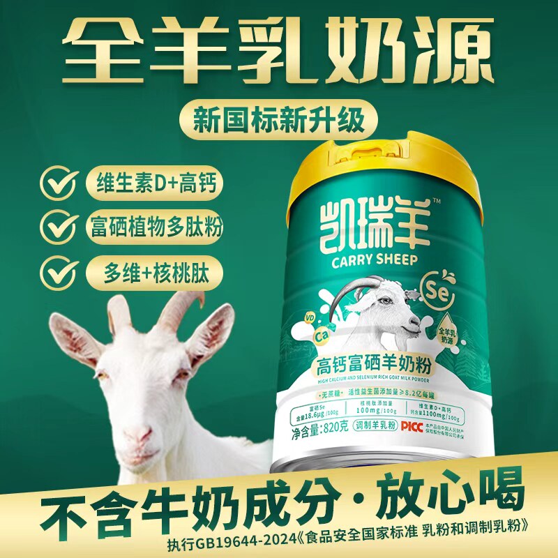 凯瑞羊高钙富硒羊奶粉无蔗糖中老年成人学生正品官方旗舰店820g