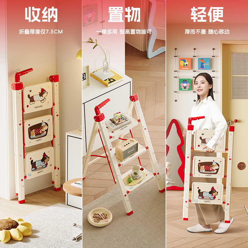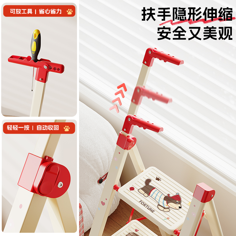 奥鹏隐形扶手家用梯子折叠伸缩加厚人字梯乔迁楼梯家庭用登高爬梯