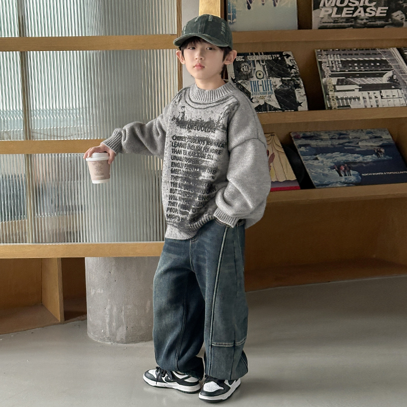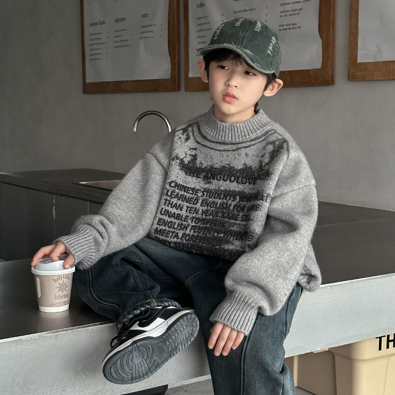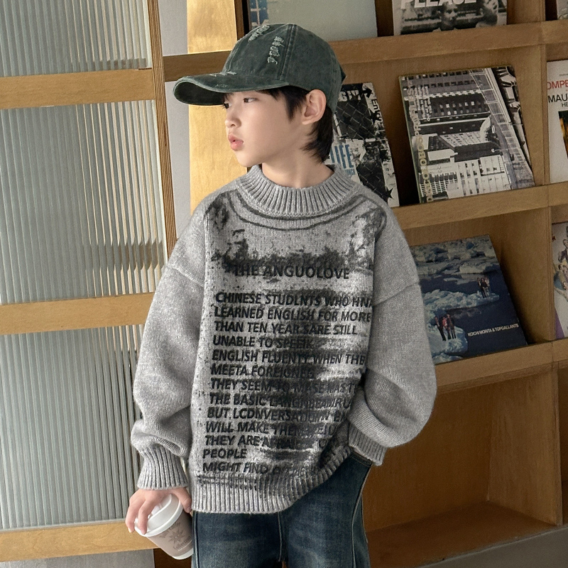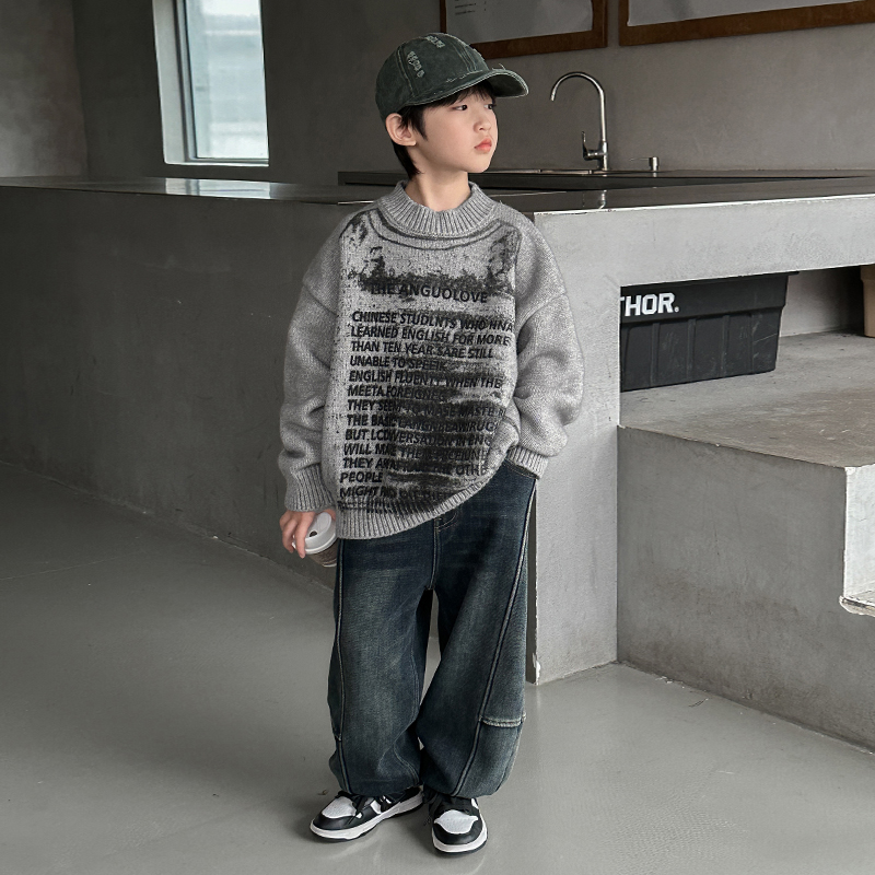 字母染墨毛衣男童秋冬款