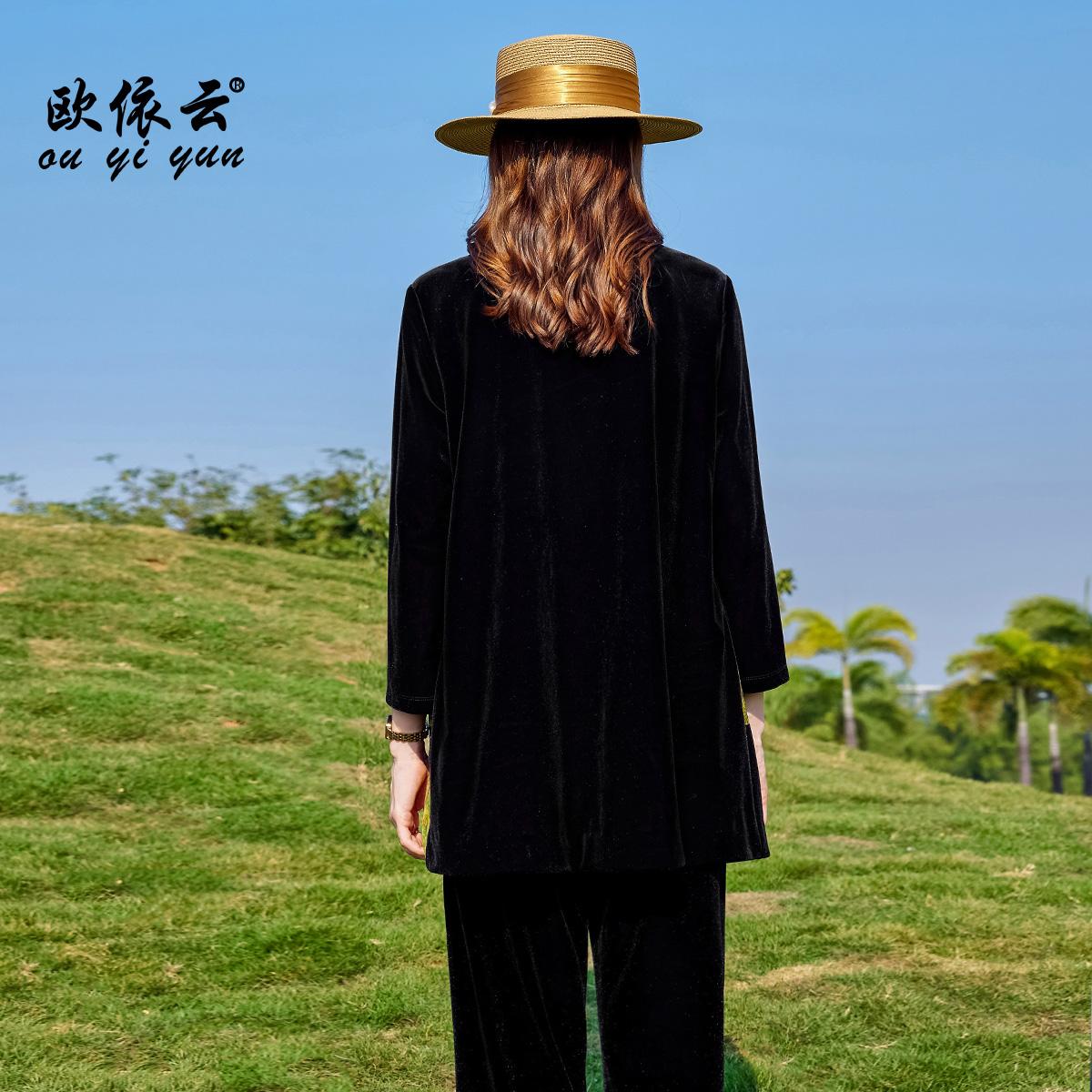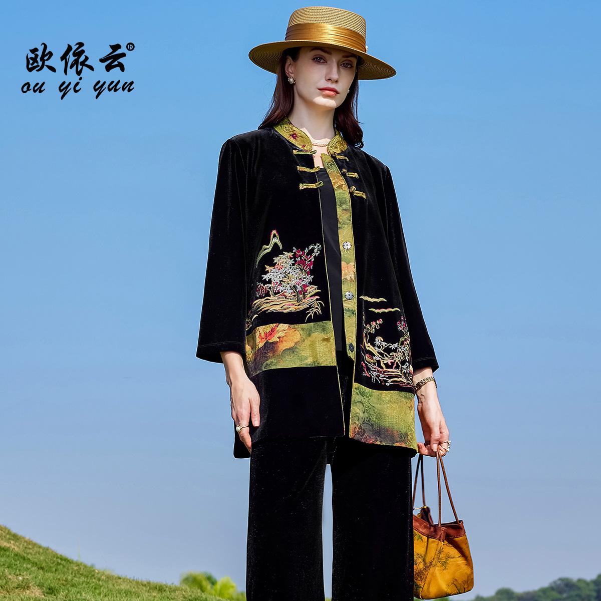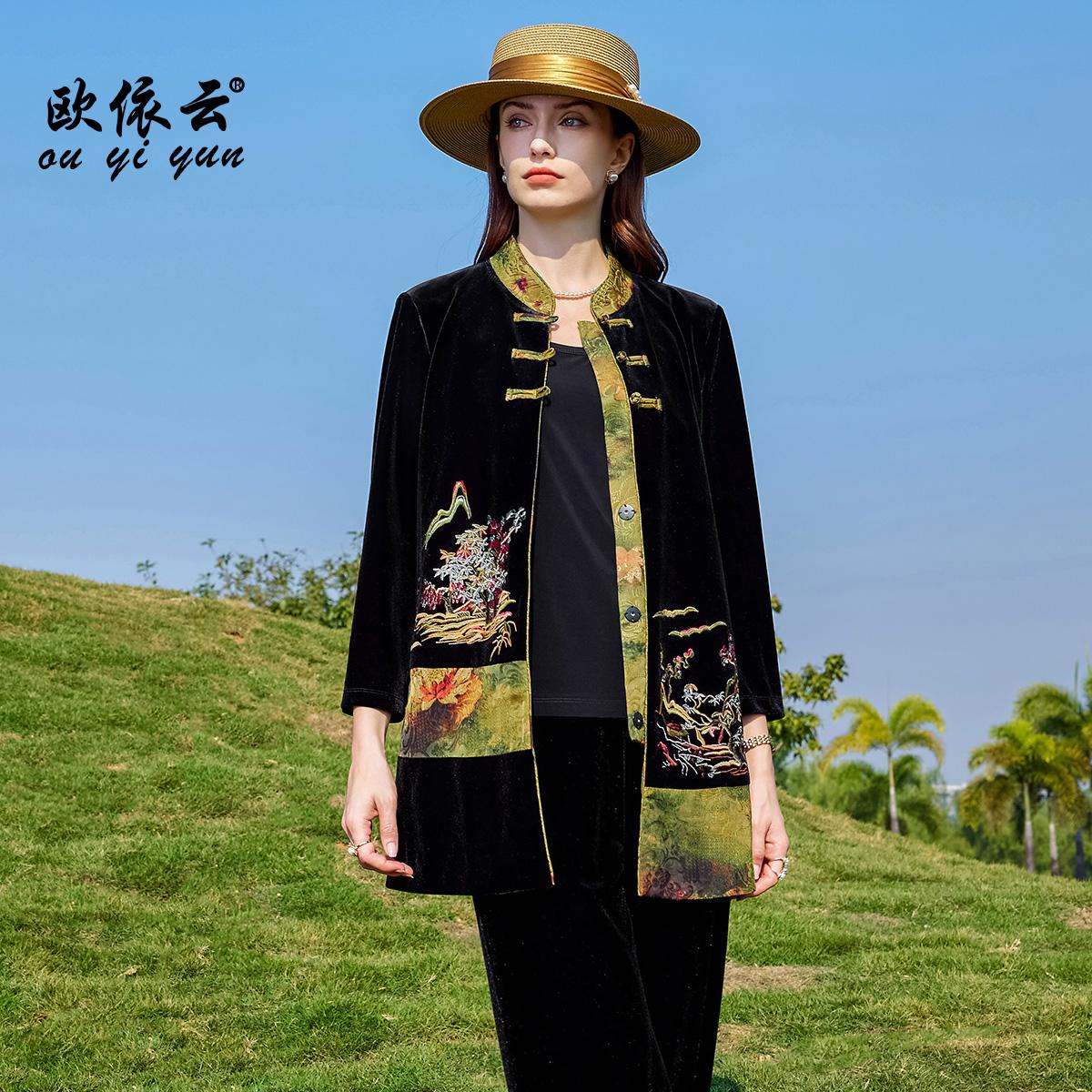 欧依云高级感气质丝绒上衣女洋气中老年妈妈秋装外套显瘦2025新款