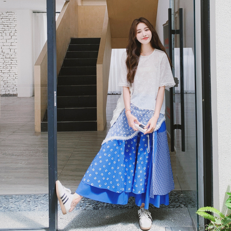 罗芬 故事面料女装官方实拍不规则蕾丝上衣半身裙套装女2025夏季