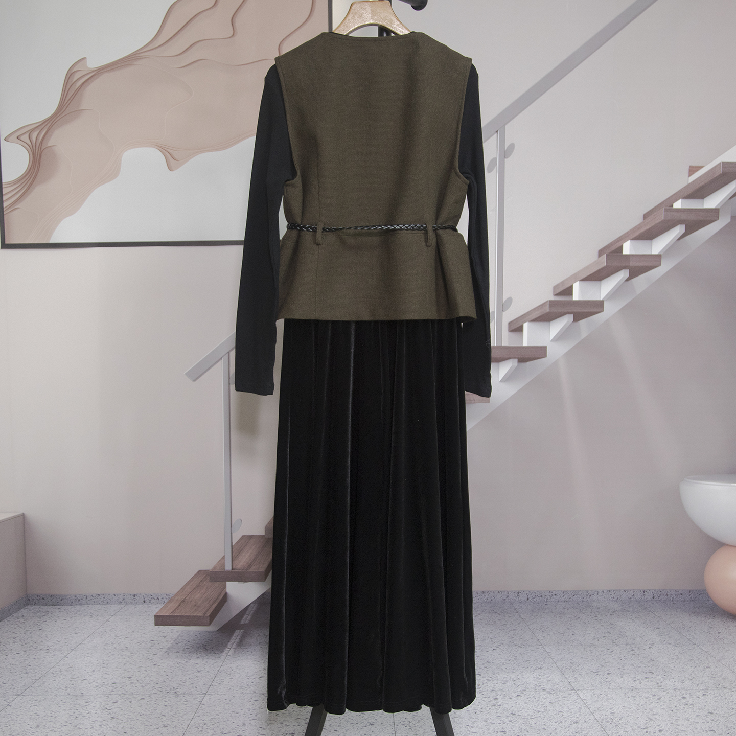 时尚气质长袖打底连衣裙金丝绒裙子马甲两件套女2025秋季新款5266