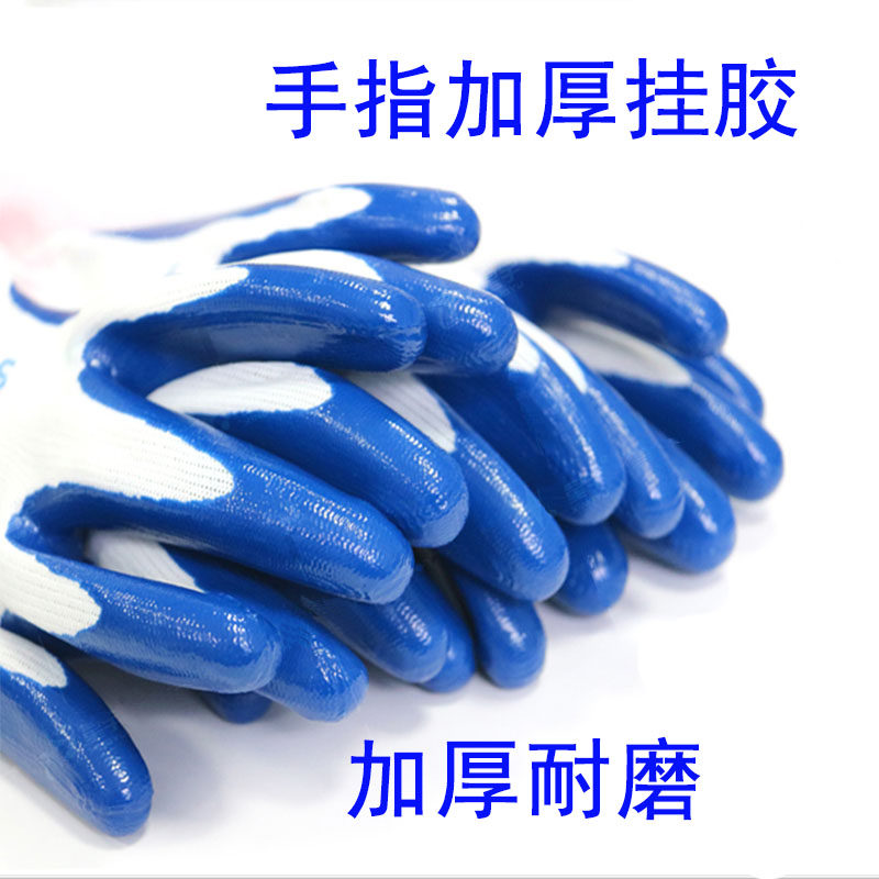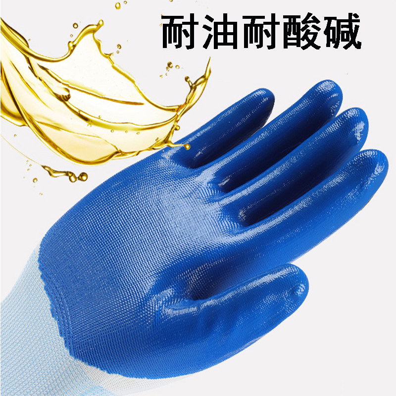 防滑劳保手套蓝色半挂尼龙丁腈浸胶手套乳胶耐油耐磨工地工作手套