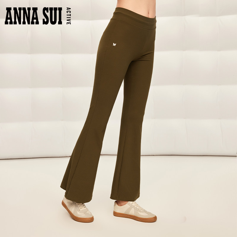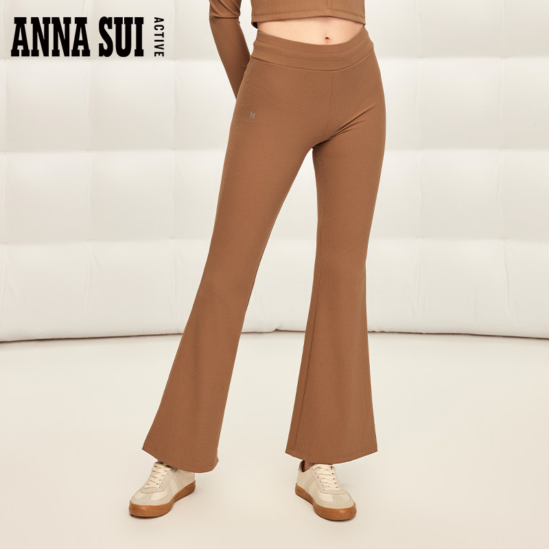 ANNA SUI安娜苏运动 经典安娜系列 弹力针织修身微喇叭休闲裤速干