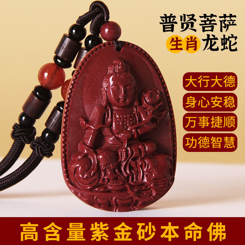 真朱砂本命佛吊坠男女项链虚空藏普贤文殊观音菩萨守护神挂件饰品