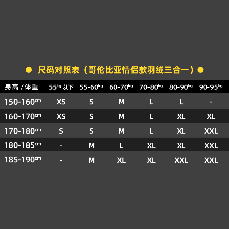 Columbia哥伦比亚男女90羽绒三合一冲锋衣