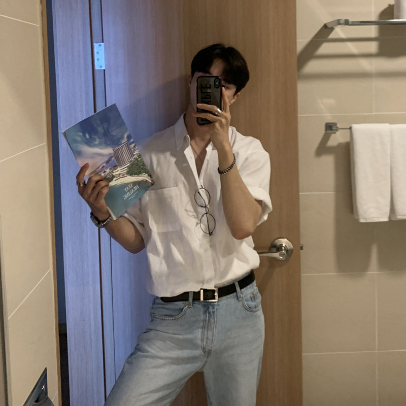 小众设计高级感棉麻衬衫男士短袖夏季款潮牌潮流痞帅夏天休闲衬衣