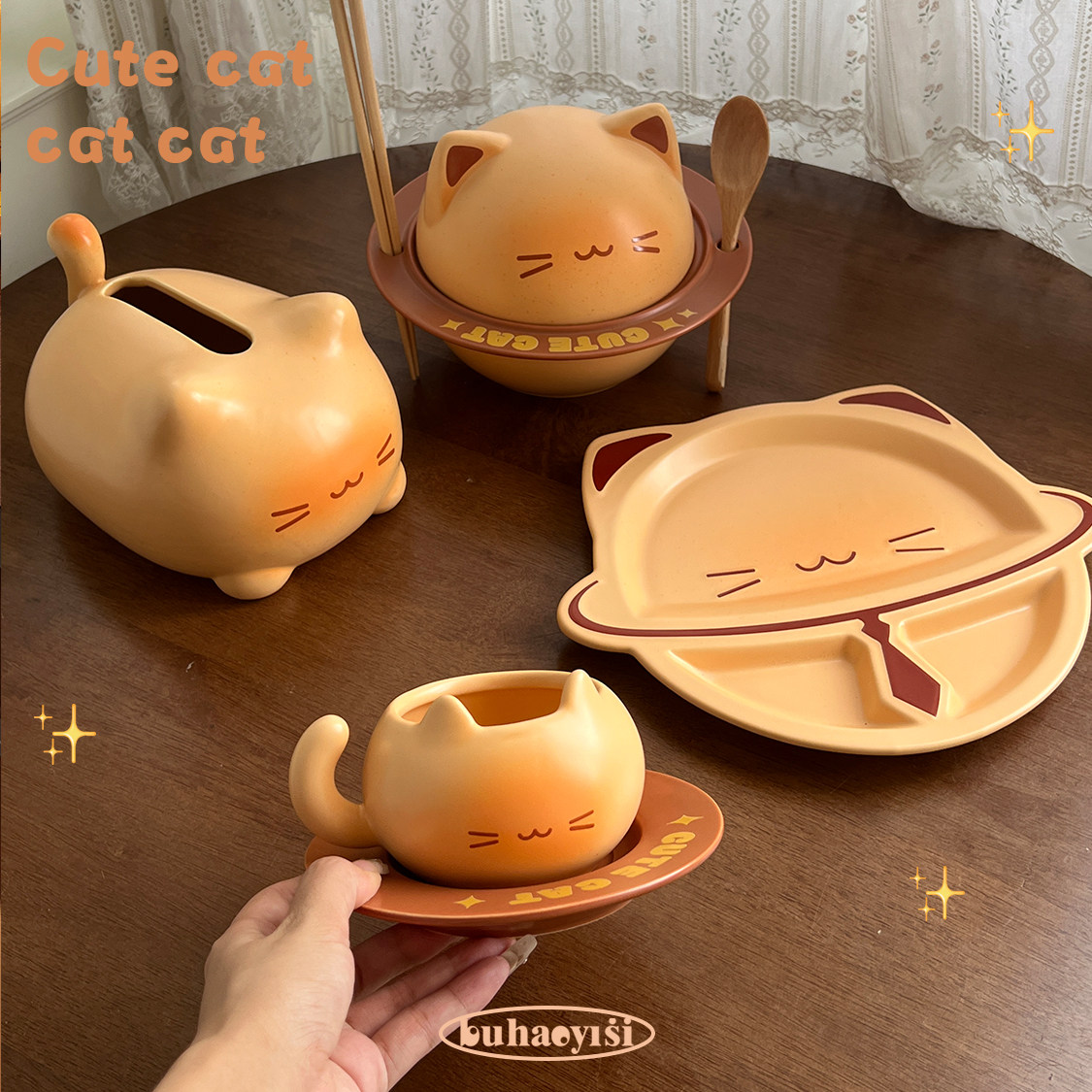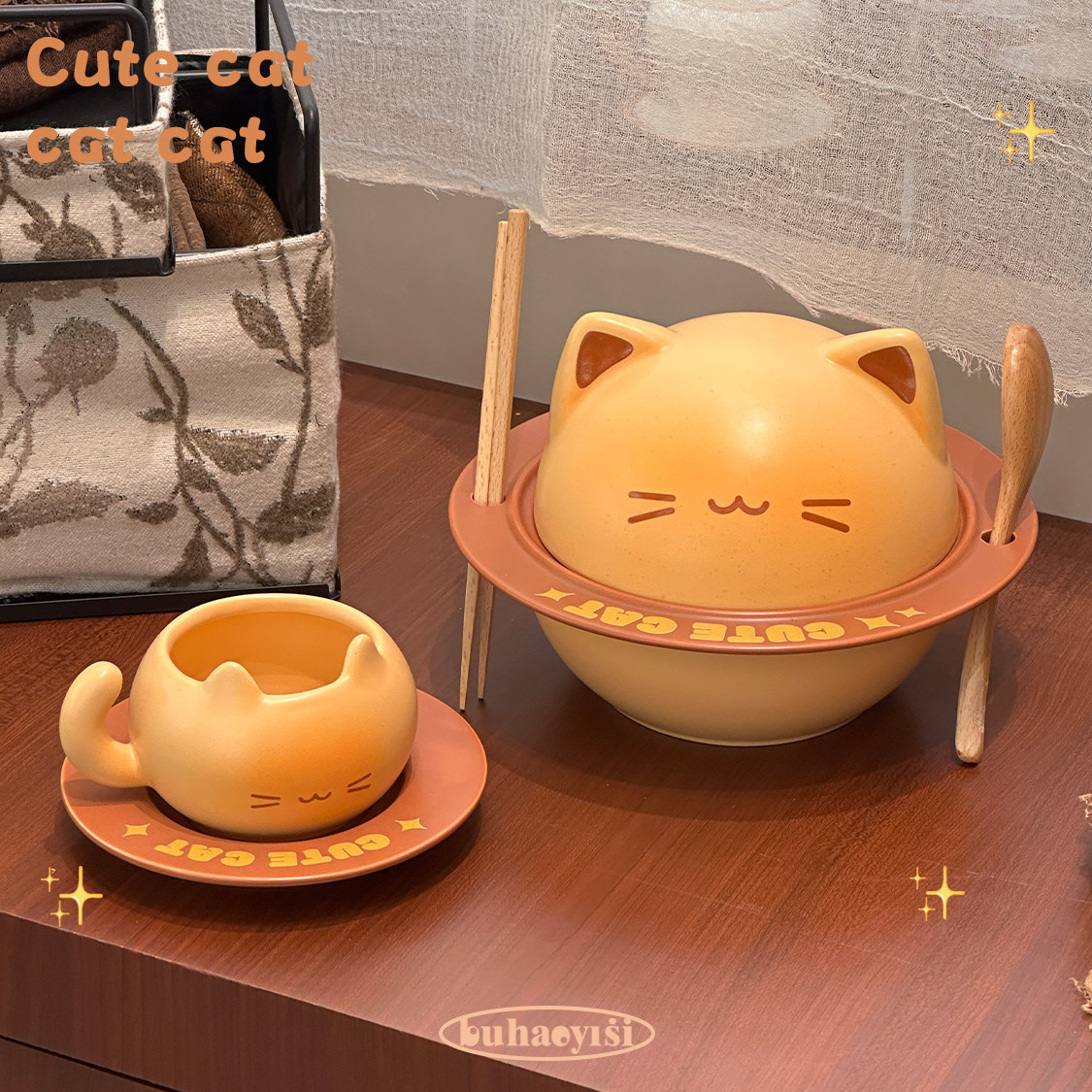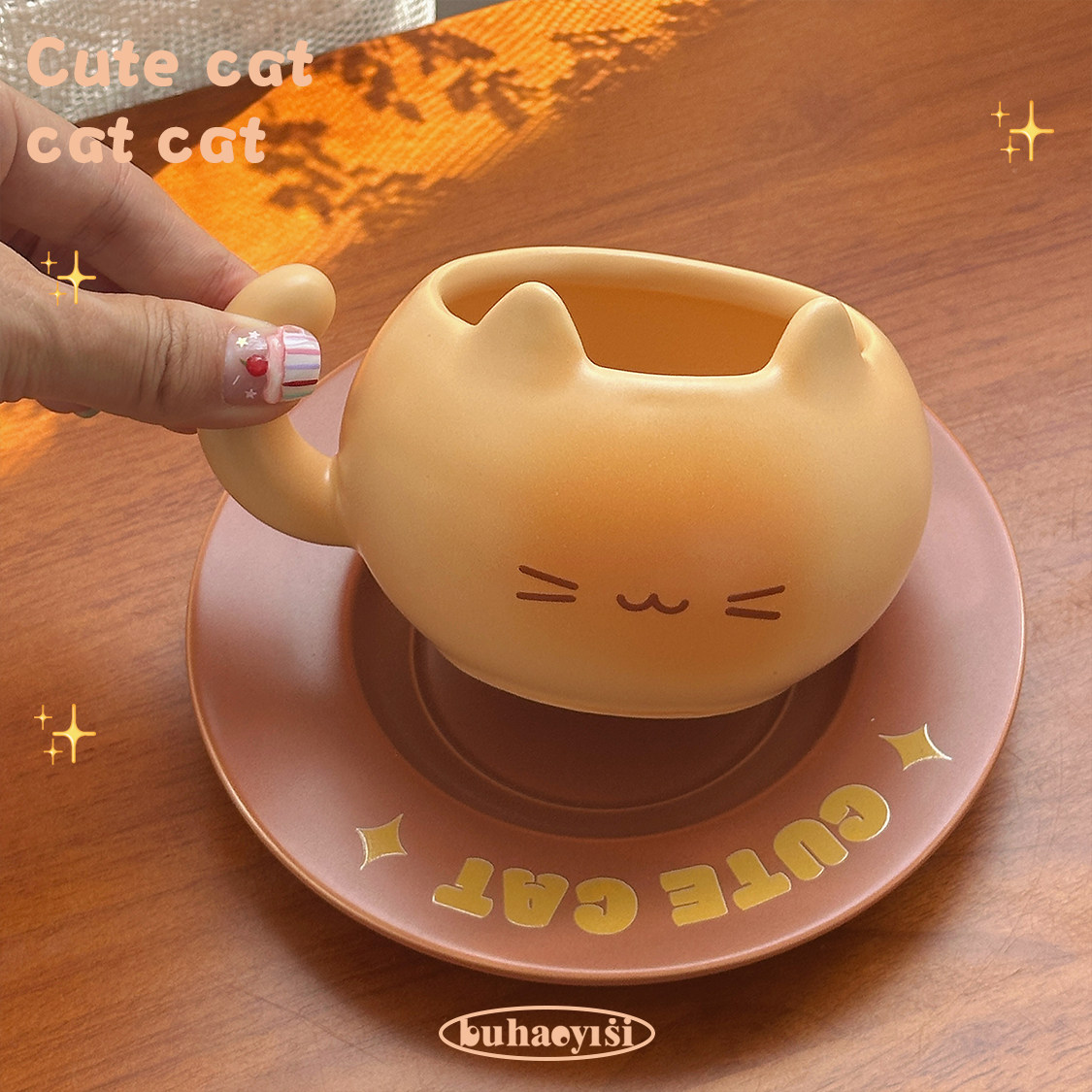 可爱焦糖面包猫咪咖啡杯碟套装