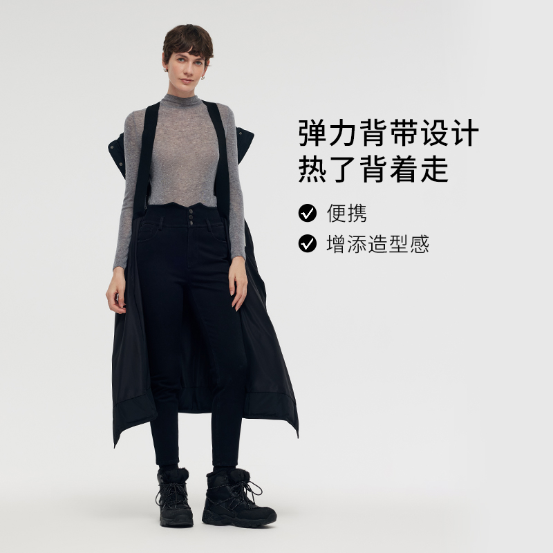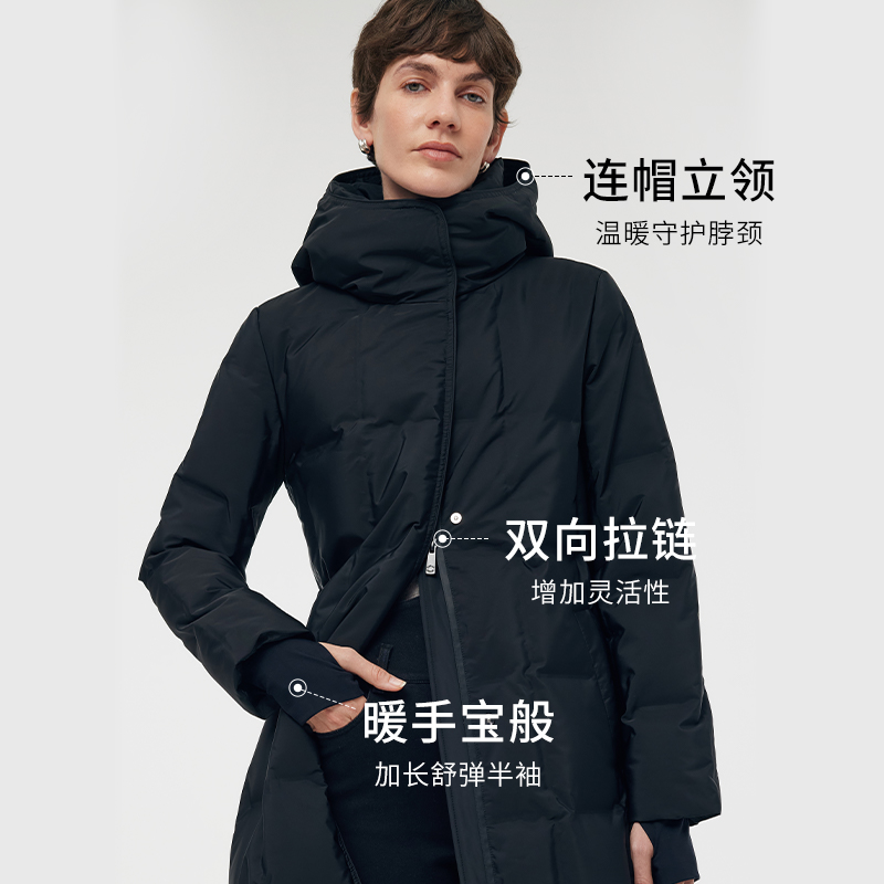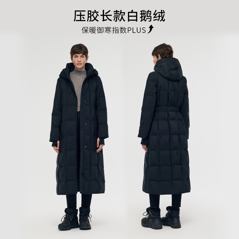 歌莉娅冬季新品长款压胶连帽鹅绒羽绒服1CDL8D510