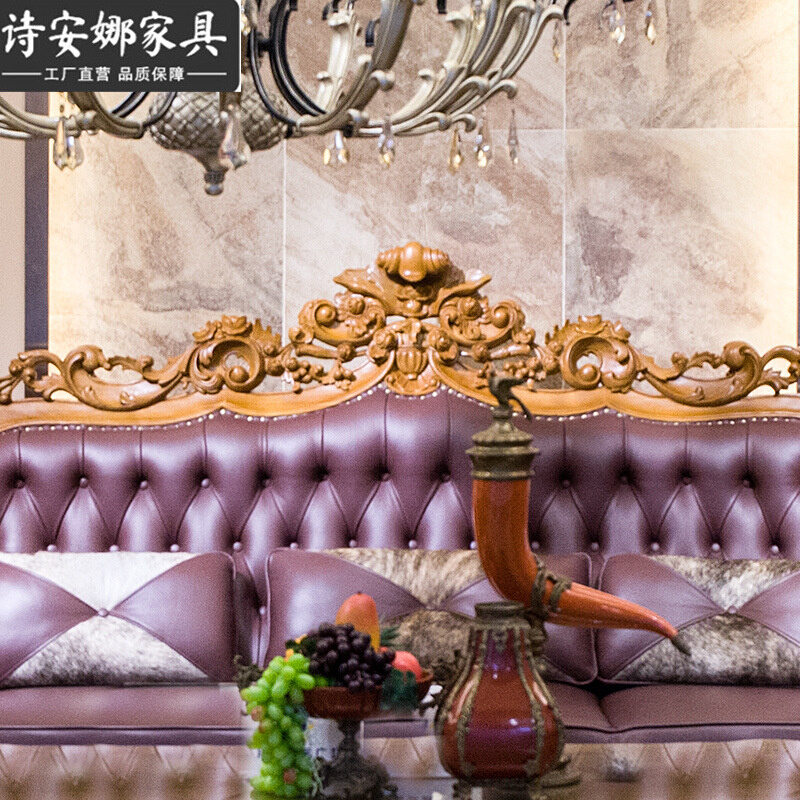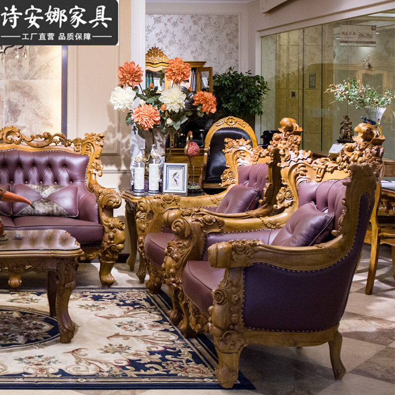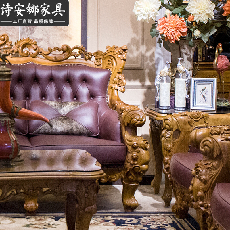 欧式别墅柚木雕花纯实木沙发奢华美式皮艺客厅组合大户型