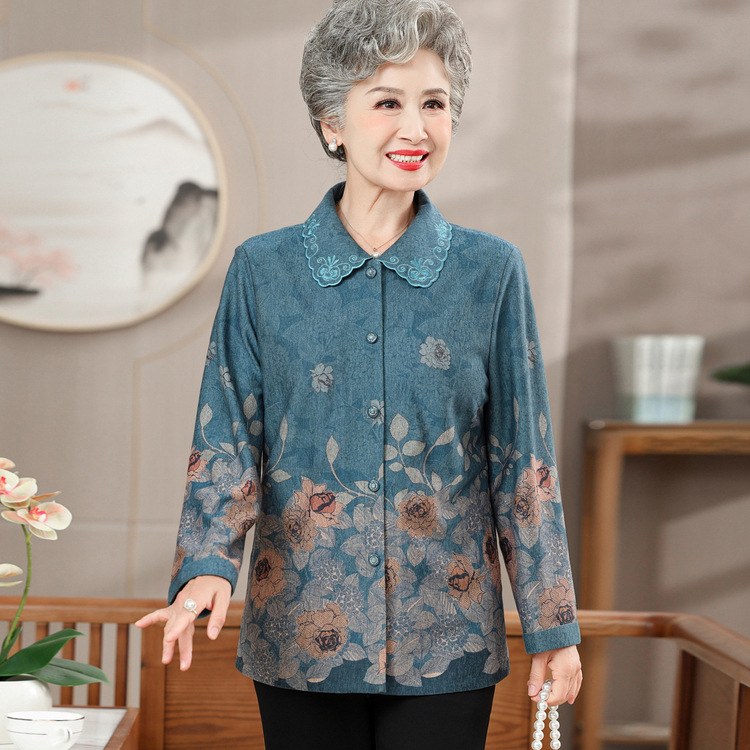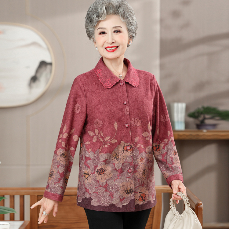 日式良品奶奶春秋薄款外套女中老年人秋装长袖衬衫新款妈妈洋气老