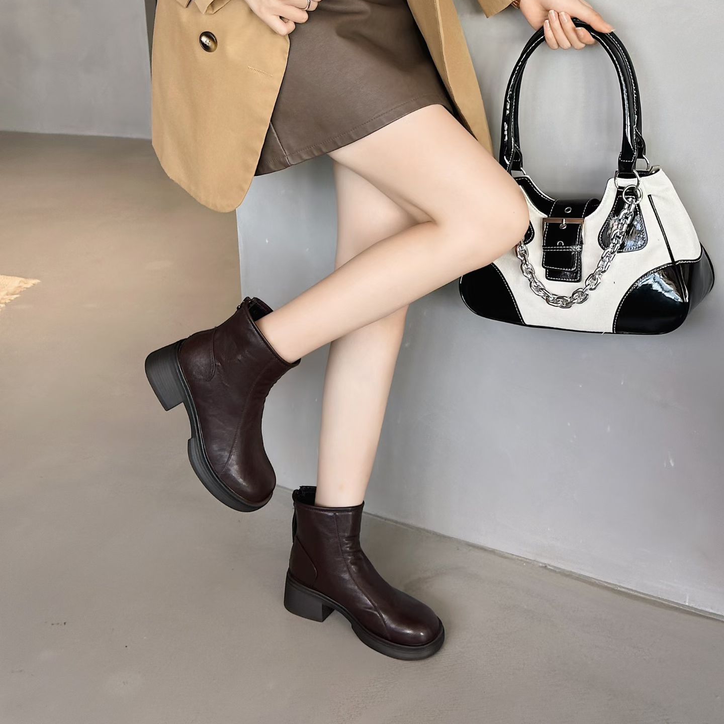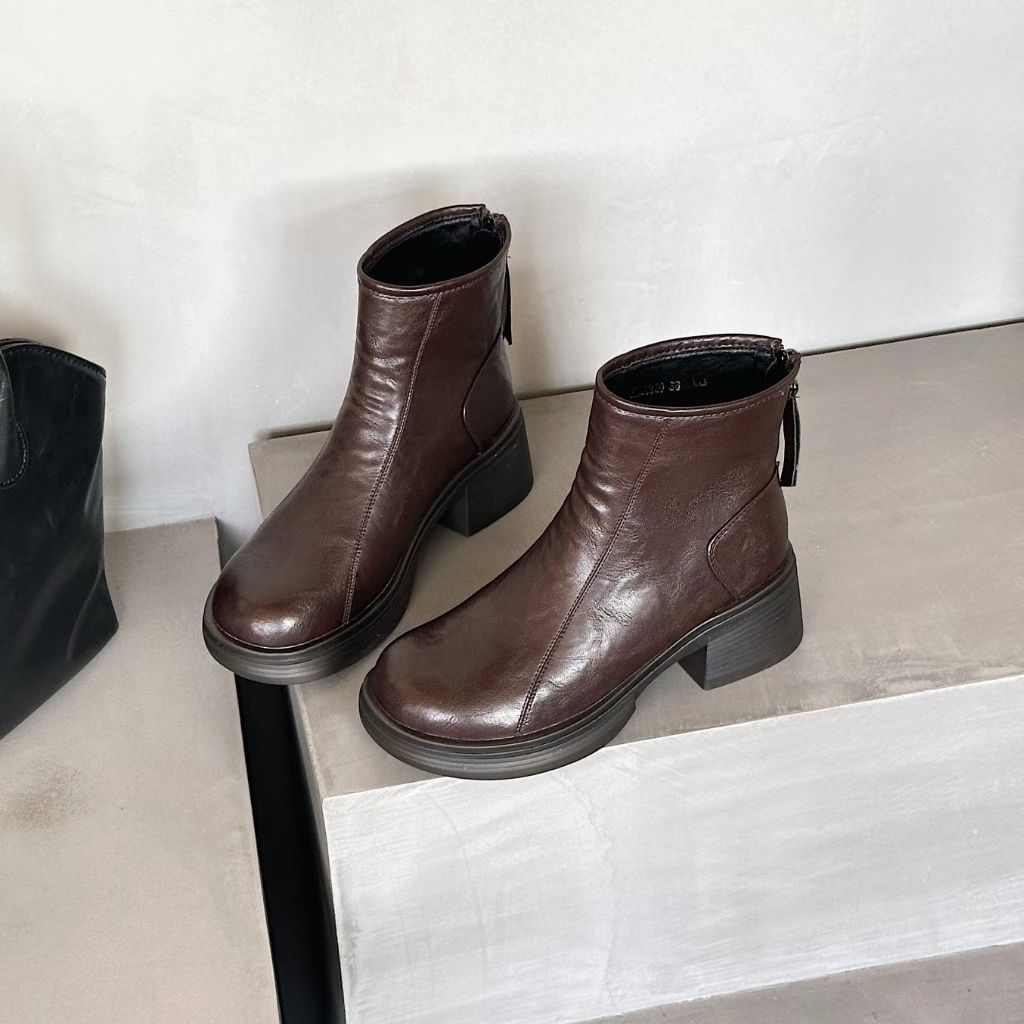 倩儿雅2025秋冬新款欧货真皮切尔西靴女粗跟厚底百搭休闲短靴8820