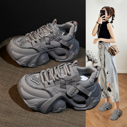 内增高老爹鞋女秋季新款2025年网面超火松糕厚底休闲小白鞋子冬季
