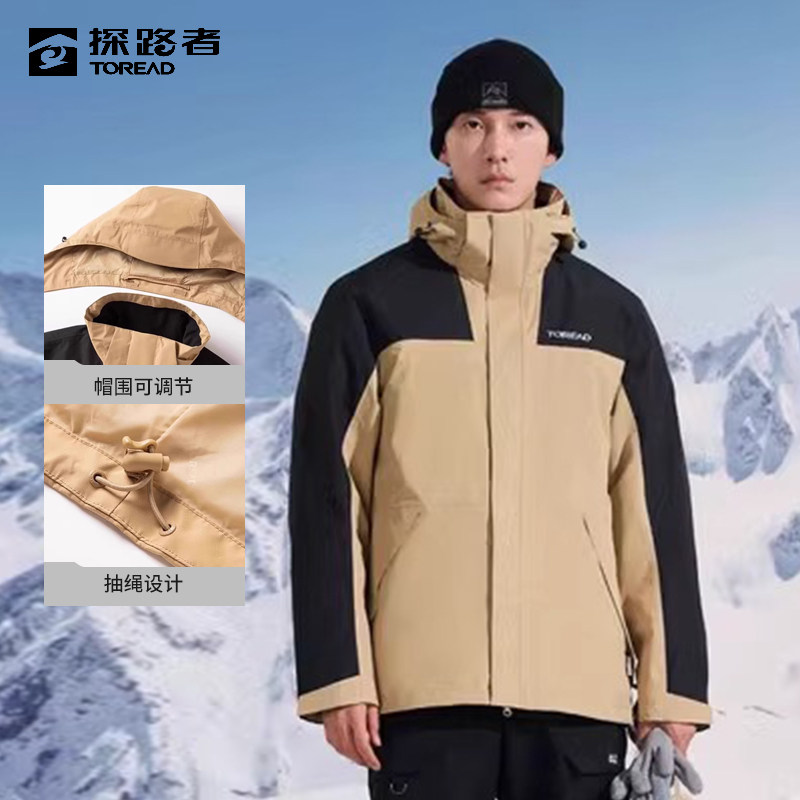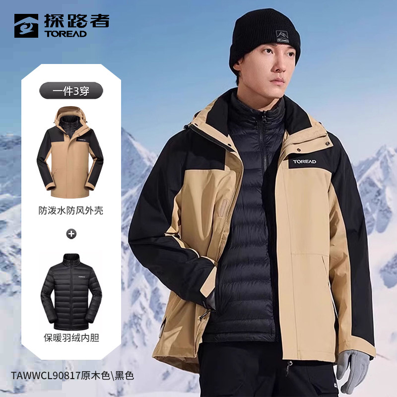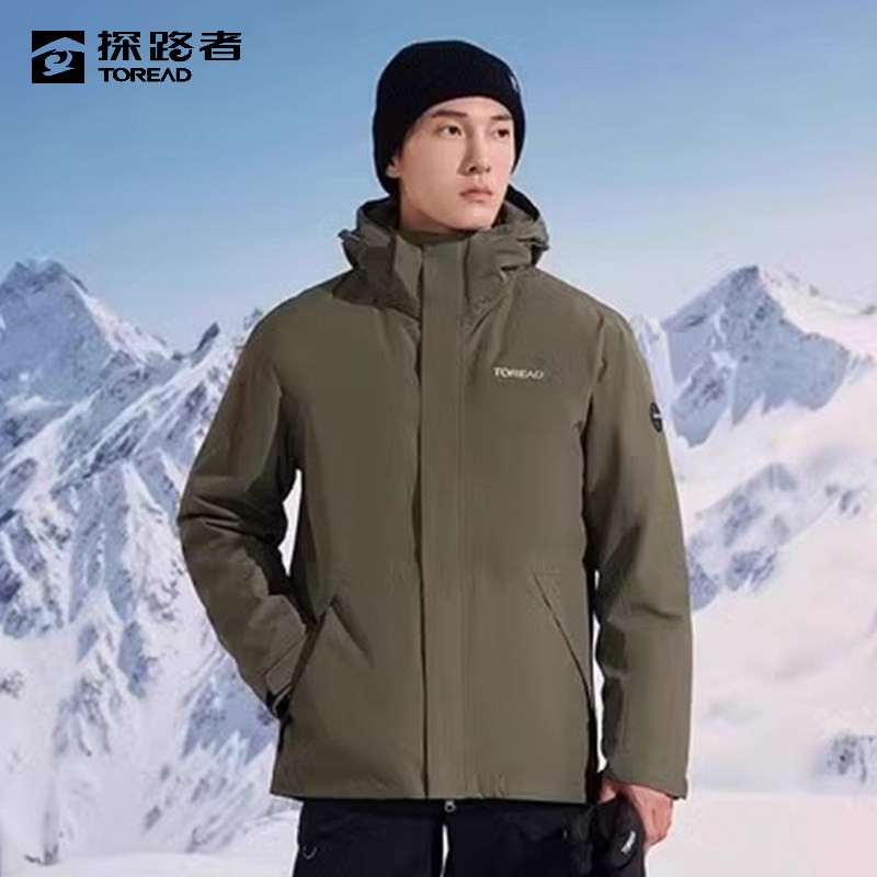 探路者秋冬鸭绒超轻套羽绒拼色山系冲锋衣户外滑雪防风防泼水外套