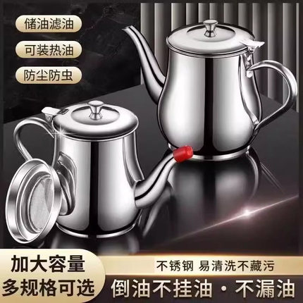 【大号不锈钢油壶】网+嘴、家用加厚储油壶油杯带滤网过滤调料壶