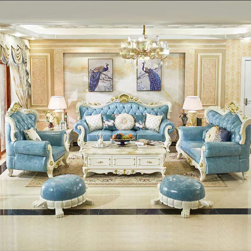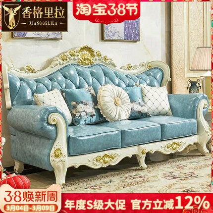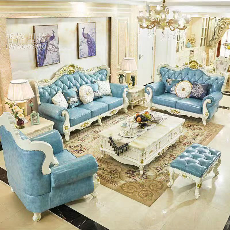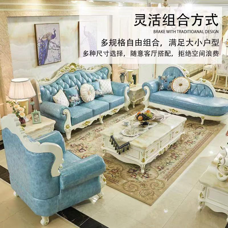 欧式皮艺沙发 美式奢华大小户型别墅客厅1+2+3带贵妃组合真皮沙发