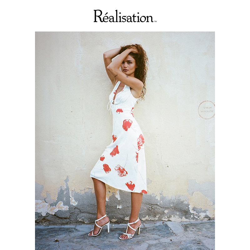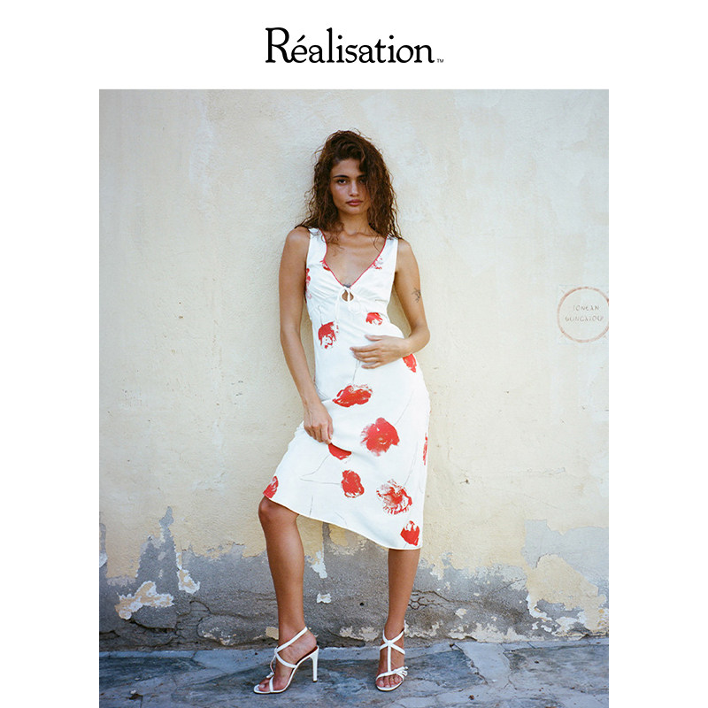 RealisationPar 连衣裙法式V领无袖斜裁真丝中长裙 The Scarlet