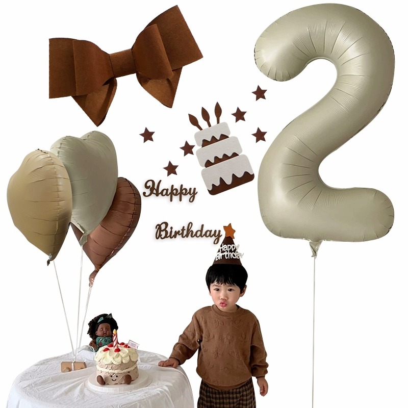 ins奶油色数字铝膜气球儿童生日布置场景派对氛围拍照道具装饰品