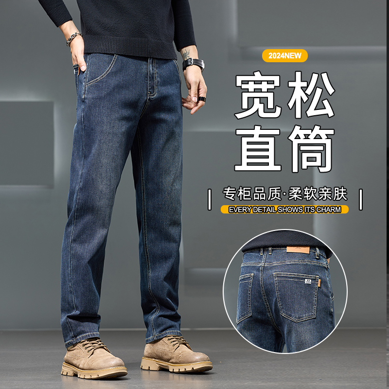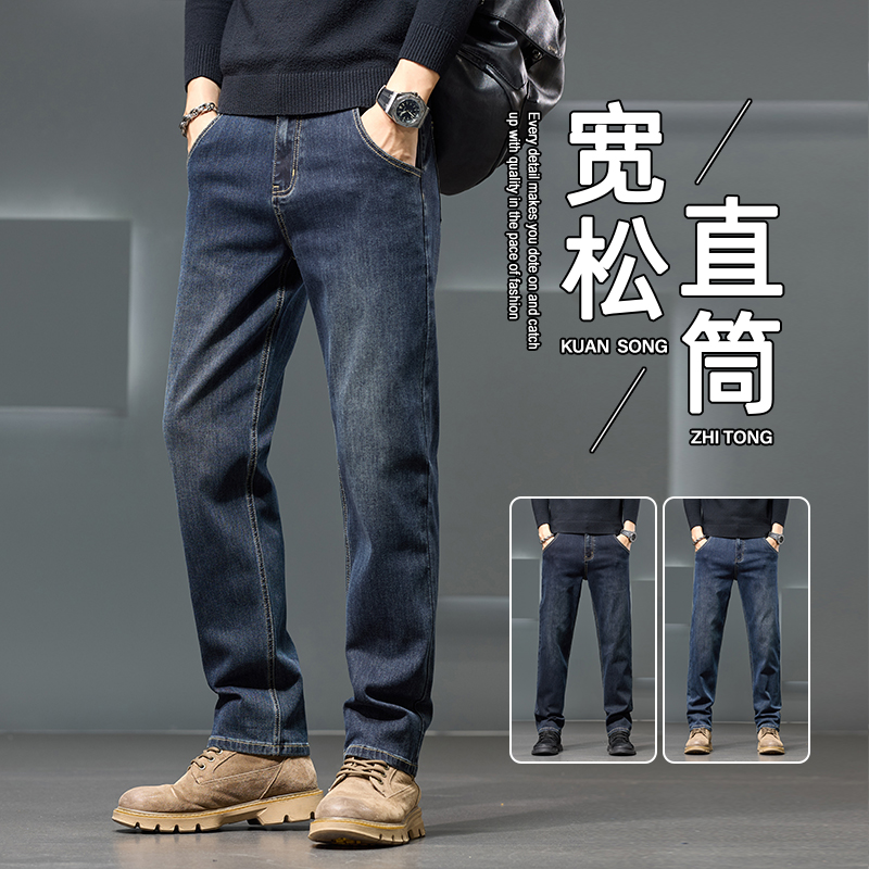 秋季牛仔裤男宽松直筒加肥加大码弹力百搭春秋长裤子运动工作高腰
