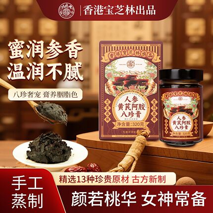 正品】香港宝芝林人参黄芪阿胶八珍滋补膏320g/罐伏湿膏正宗