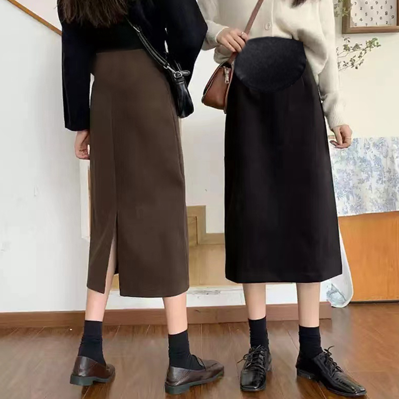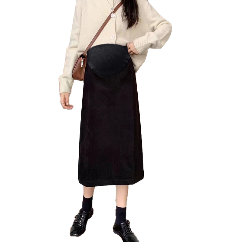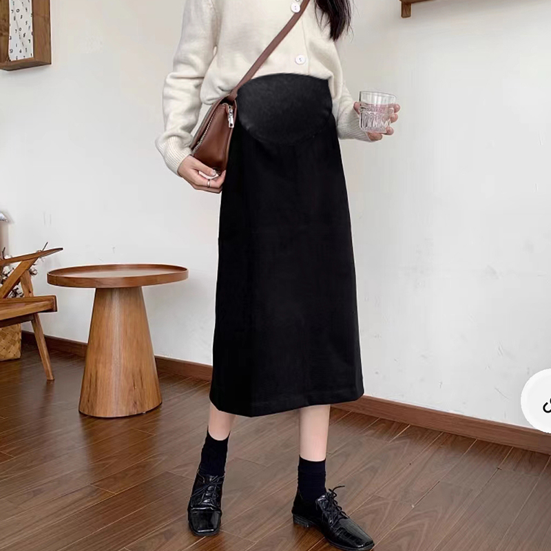 孕妇半身裙春秋款百搭开叉文艺风中长款优质毛呢高腰托腹包臀裙子