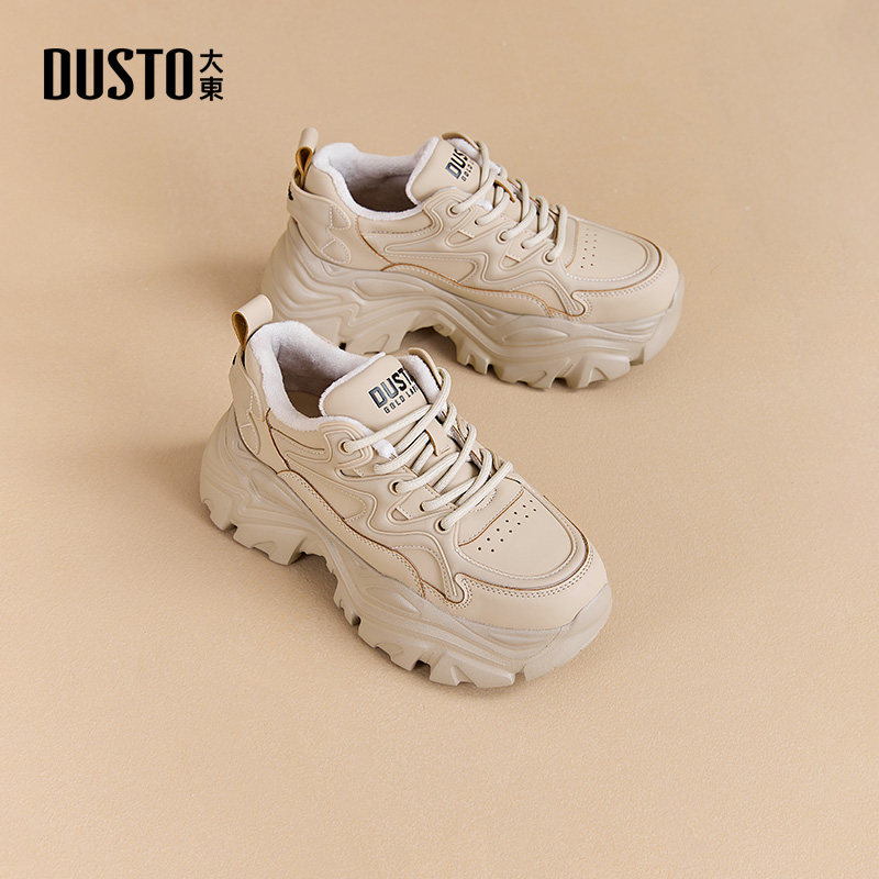 大东老爹鞋女鞋2025秋季新款时尚休闲简约粗跟系带高跟圆头Q0361