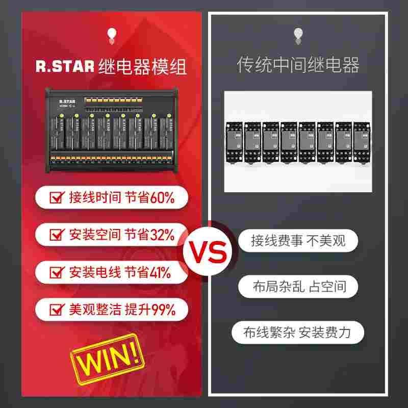 R.STAR继电器模组DC24v中继模块PLC放大板端子台中间控制4/6/8路