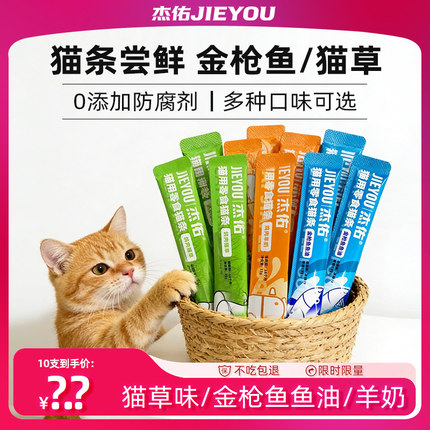 【天猫U先】杰佑猫条尝鲜装试吃猫零食金枪鱼猫草成猫幼猫拌猫粮