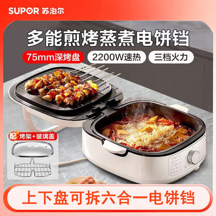 苏泊尔电饼铛家用双面加热加深大烙饼锅煎烤盘锅可拆洗火锅煎烤机