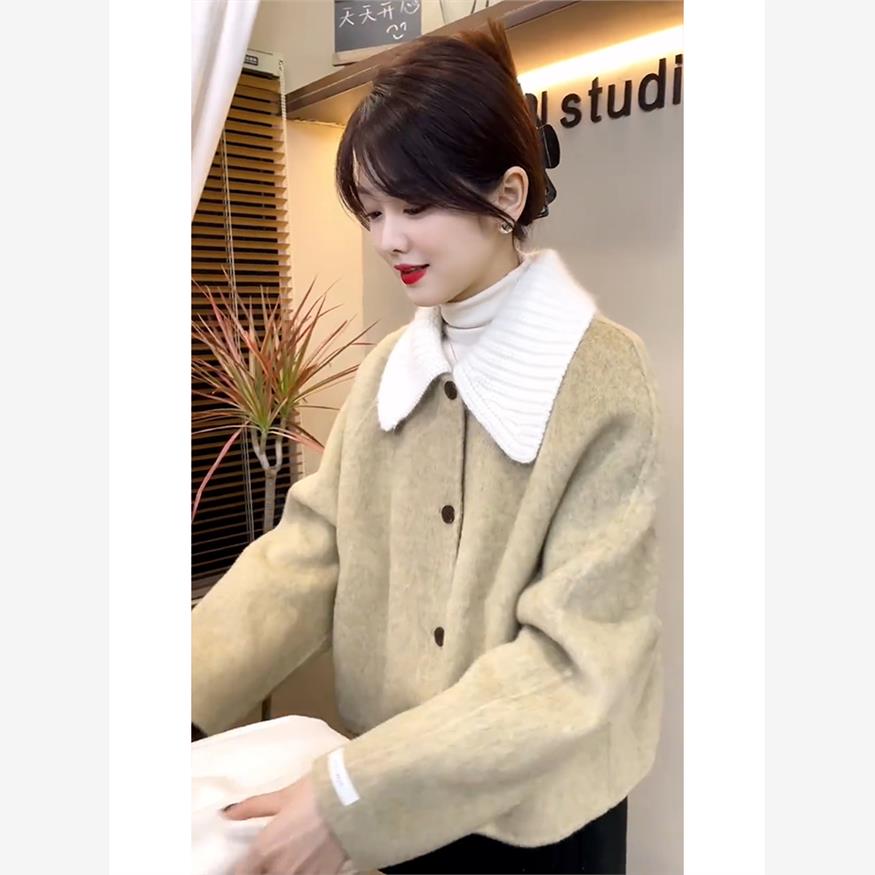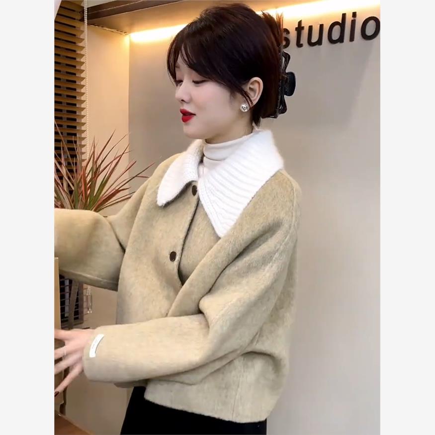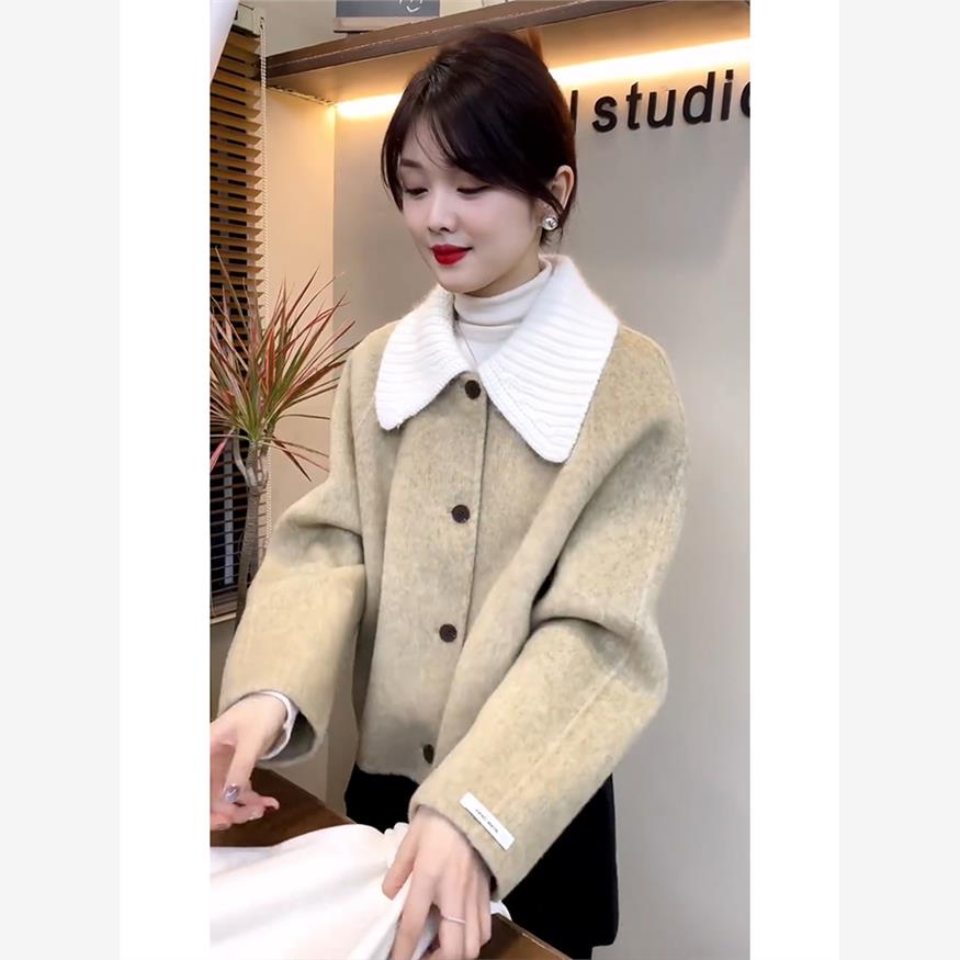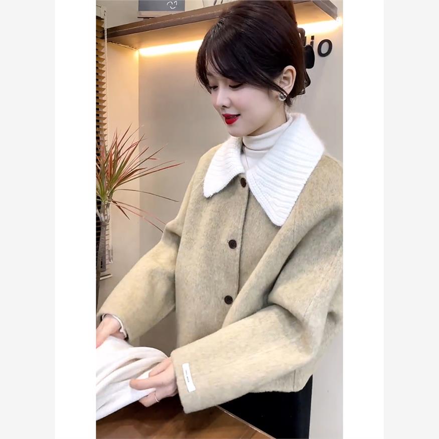 春季短款翻领大衣富家千金高级感加厚毛呢外套女秋冬季2024年新款
