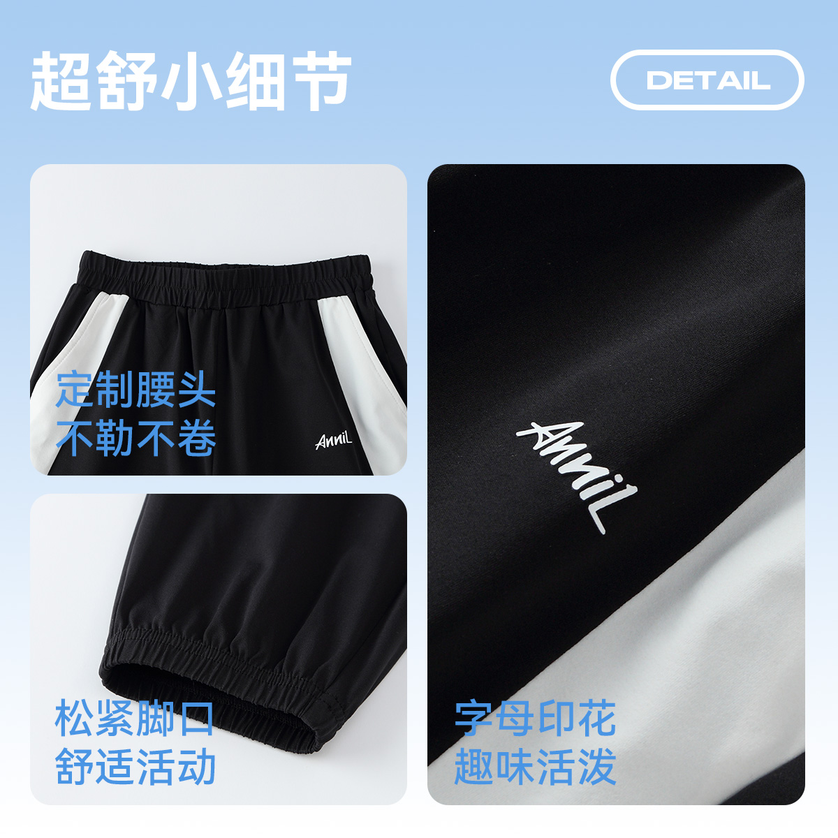 安奈儿童装男童针织单裤2025夏款撞色拼接运动裤长裤子宽松束脚裤