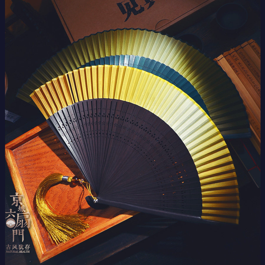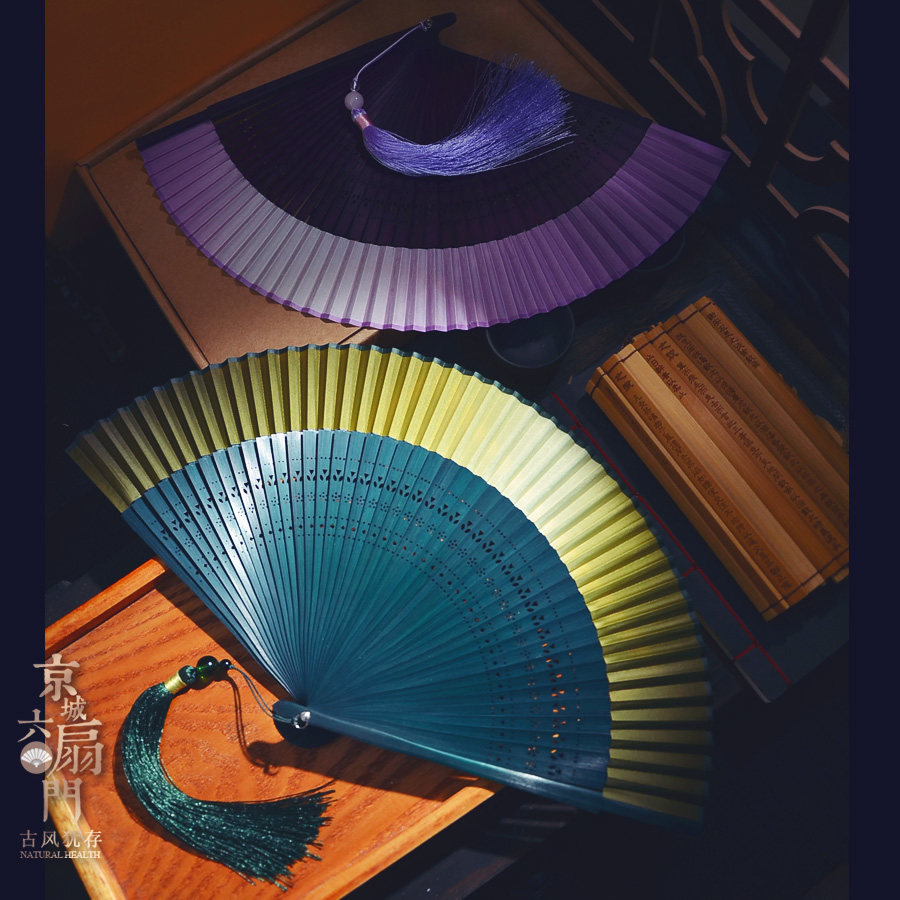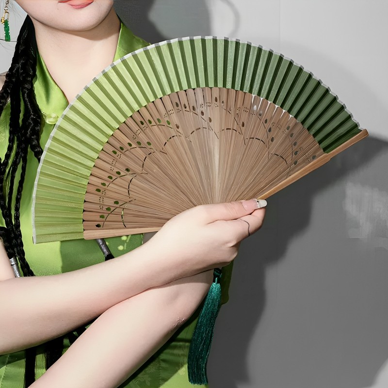 中国风折扇子绿色折叠扇古风纯色汉服小竹扇旗袍摄影女跳舞蹈扇