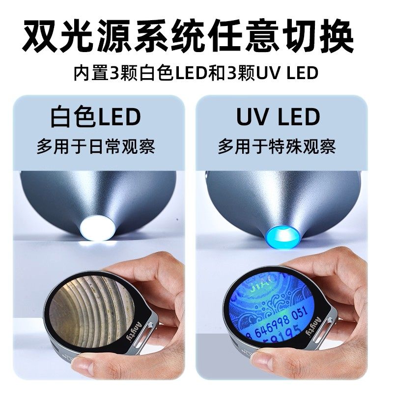艾尼提便携式LED漏斗显微镜3R-MJL03手持小型便携紫白双光拍照