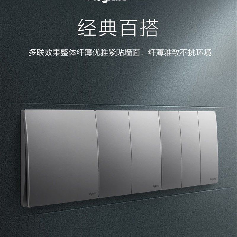 罗格朗未莱深砂银灰色关插座五孔带关三孔插家用墙壁型