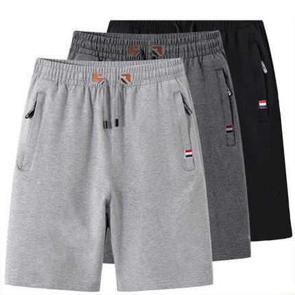 新款纯棉夏季运动短裤休闲五分裤男薄款宽松大码纯色中裤沙滩裤男