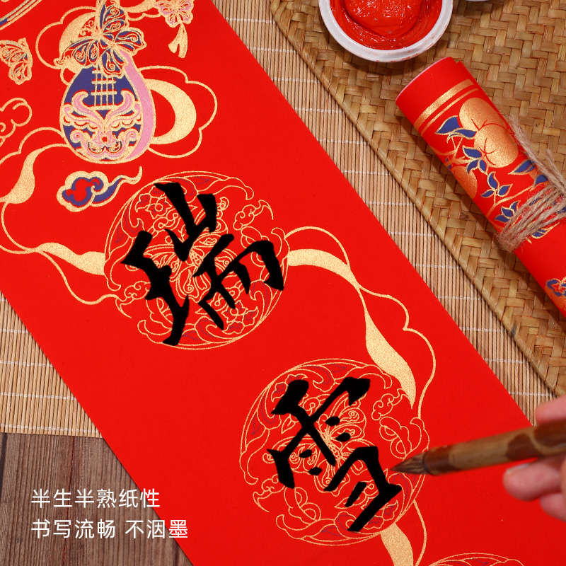 2026新款马年万年红对联纸空白手写春联纸自写蜡染对联专用纸宣纸毛笔书法洒金红纸七言斗方福字春节过年批发