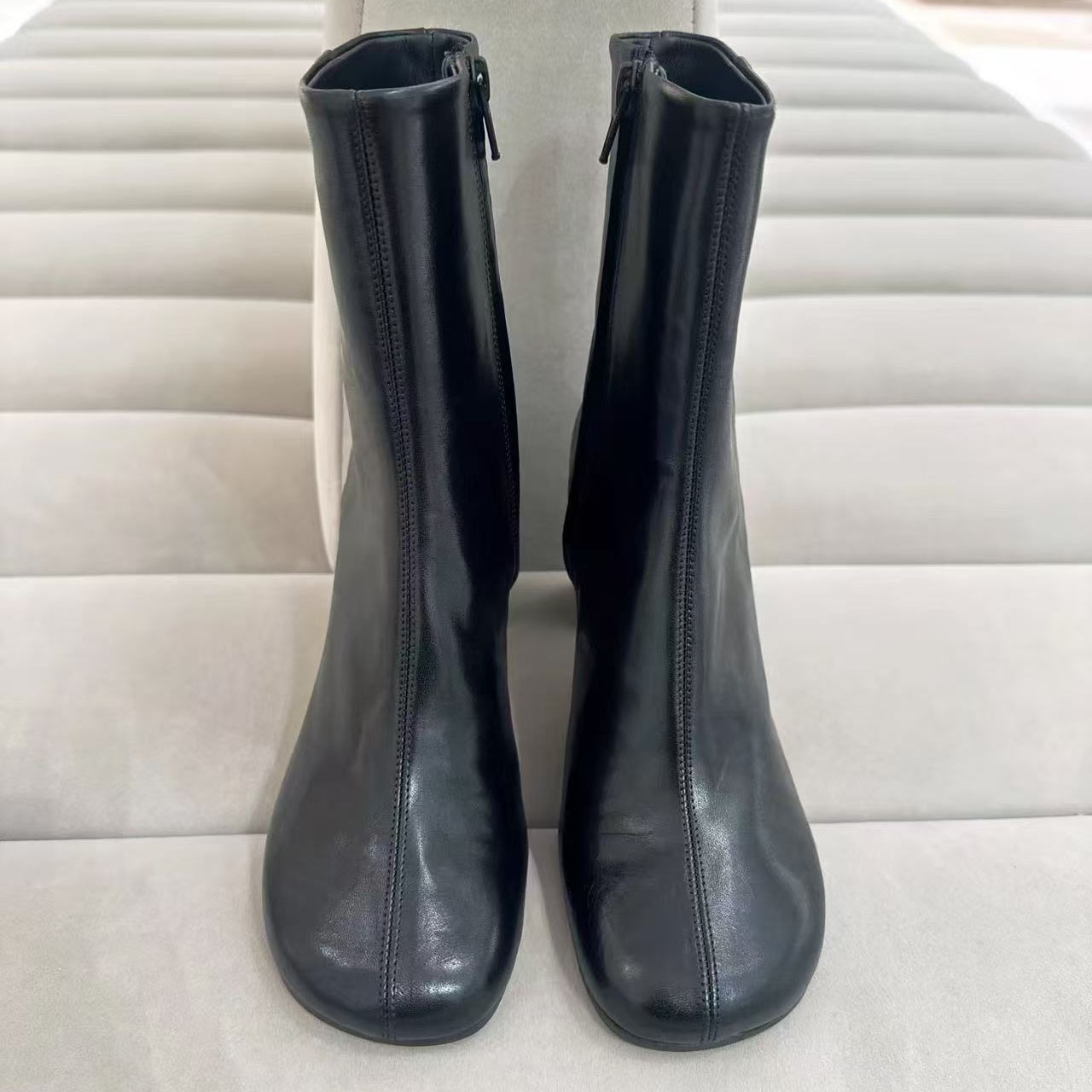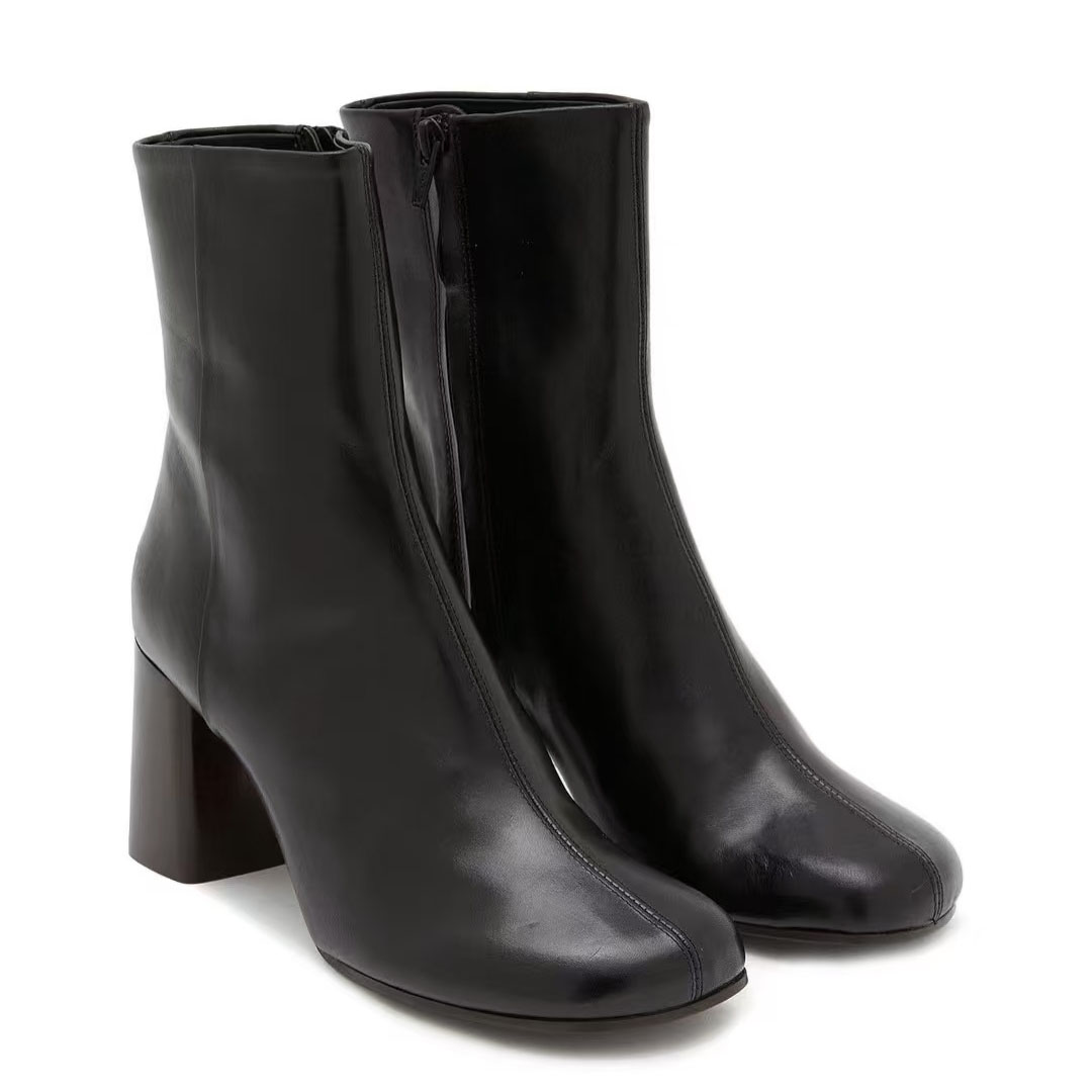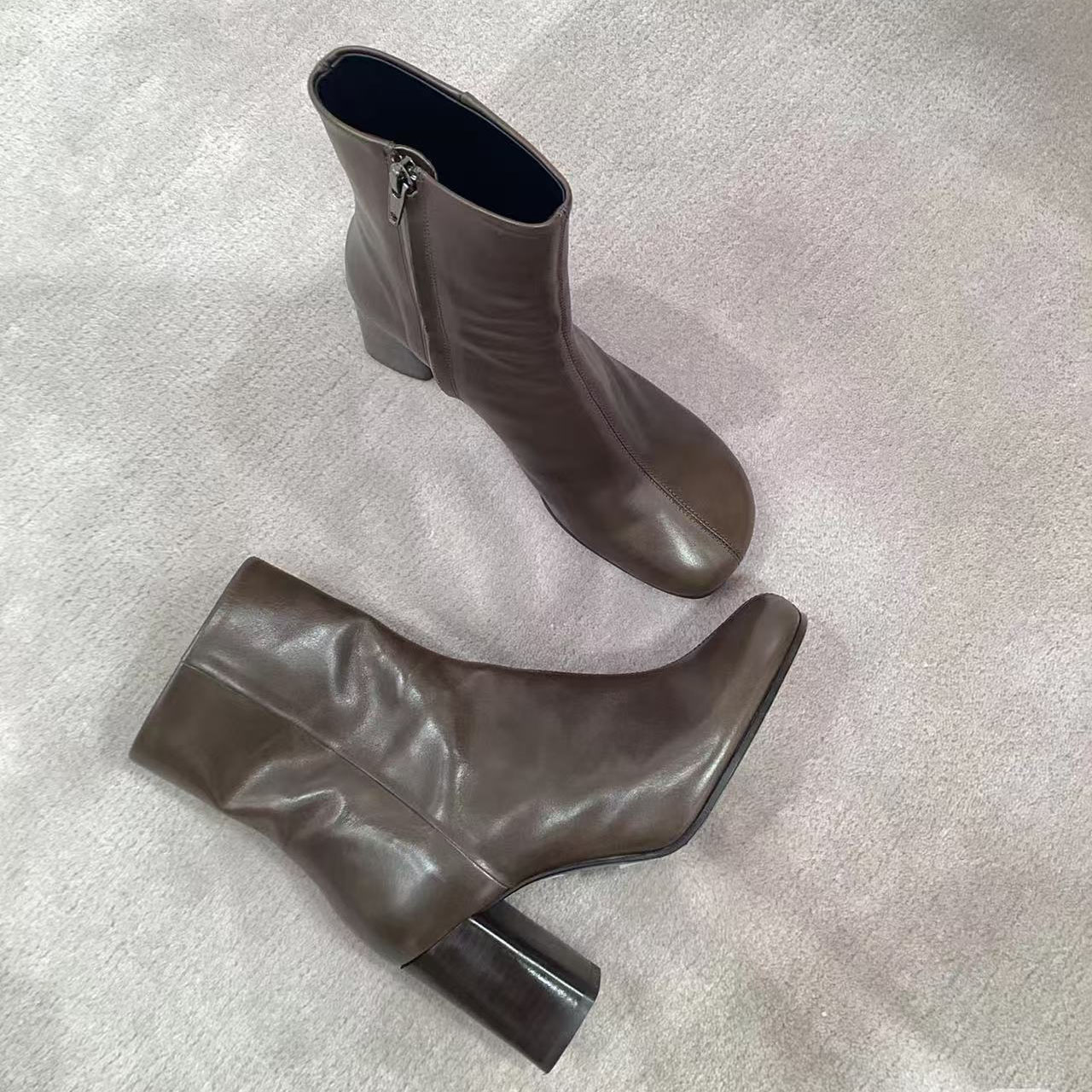 秋冬2025新款简约真皮短靴韩系复古高跟显瘦百搭大头粗跟小皮靴