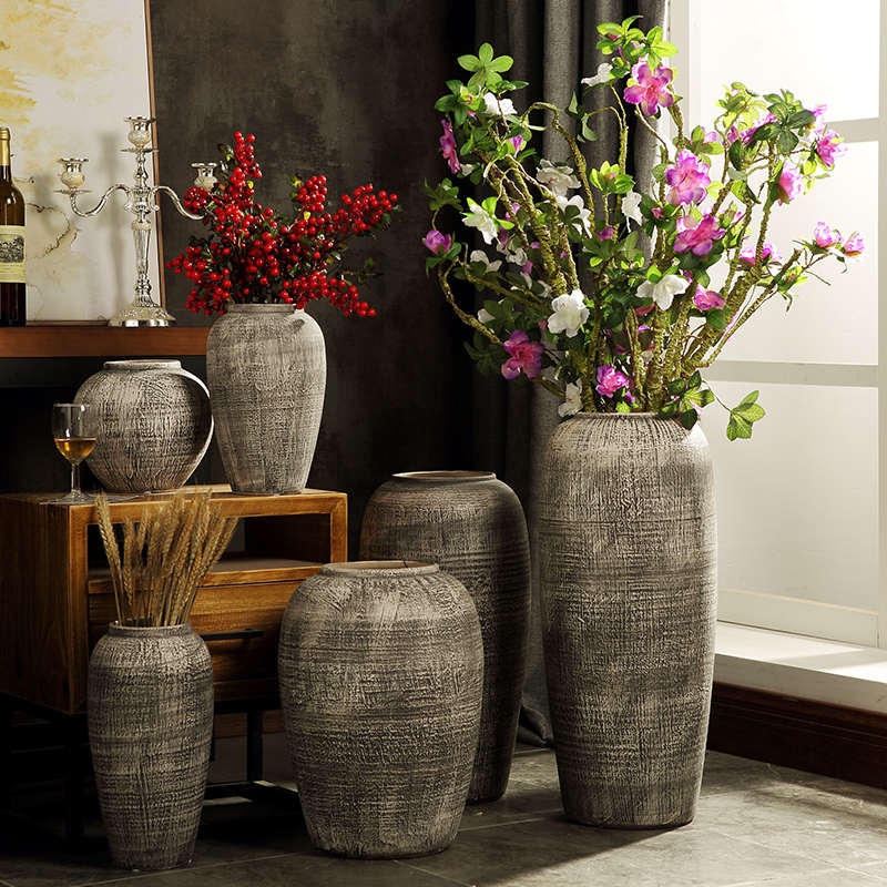 简约现代复古陶瓷干花落地大花瓶景德镇陶罐装饰摆件客厅插花陶盆