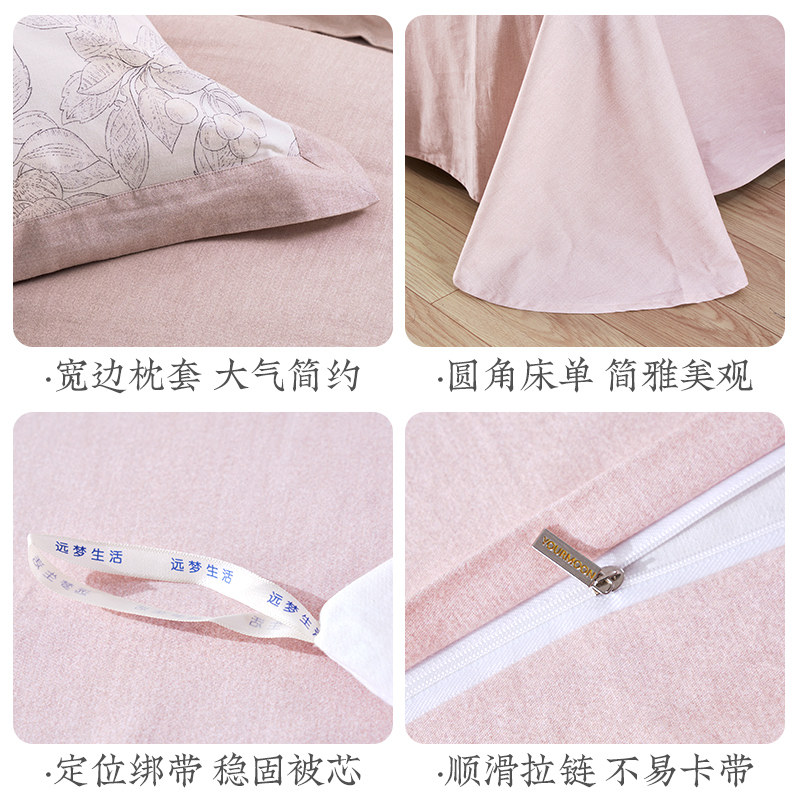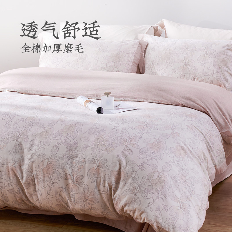 远梦纯棉加厚磨毛四件套套件家用大床被套枕套床单保暖床品套件