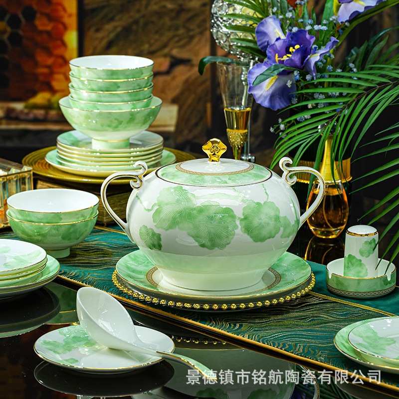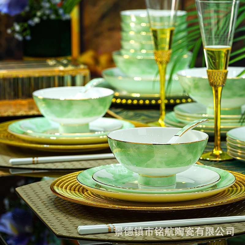 陶瓷餐具套装景德镇新款骨瓷家用高档描金碗盘碟餐具套组乔迁送礼