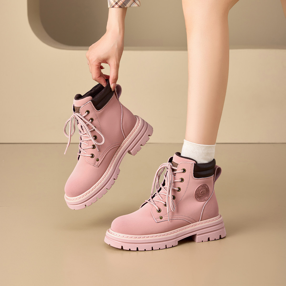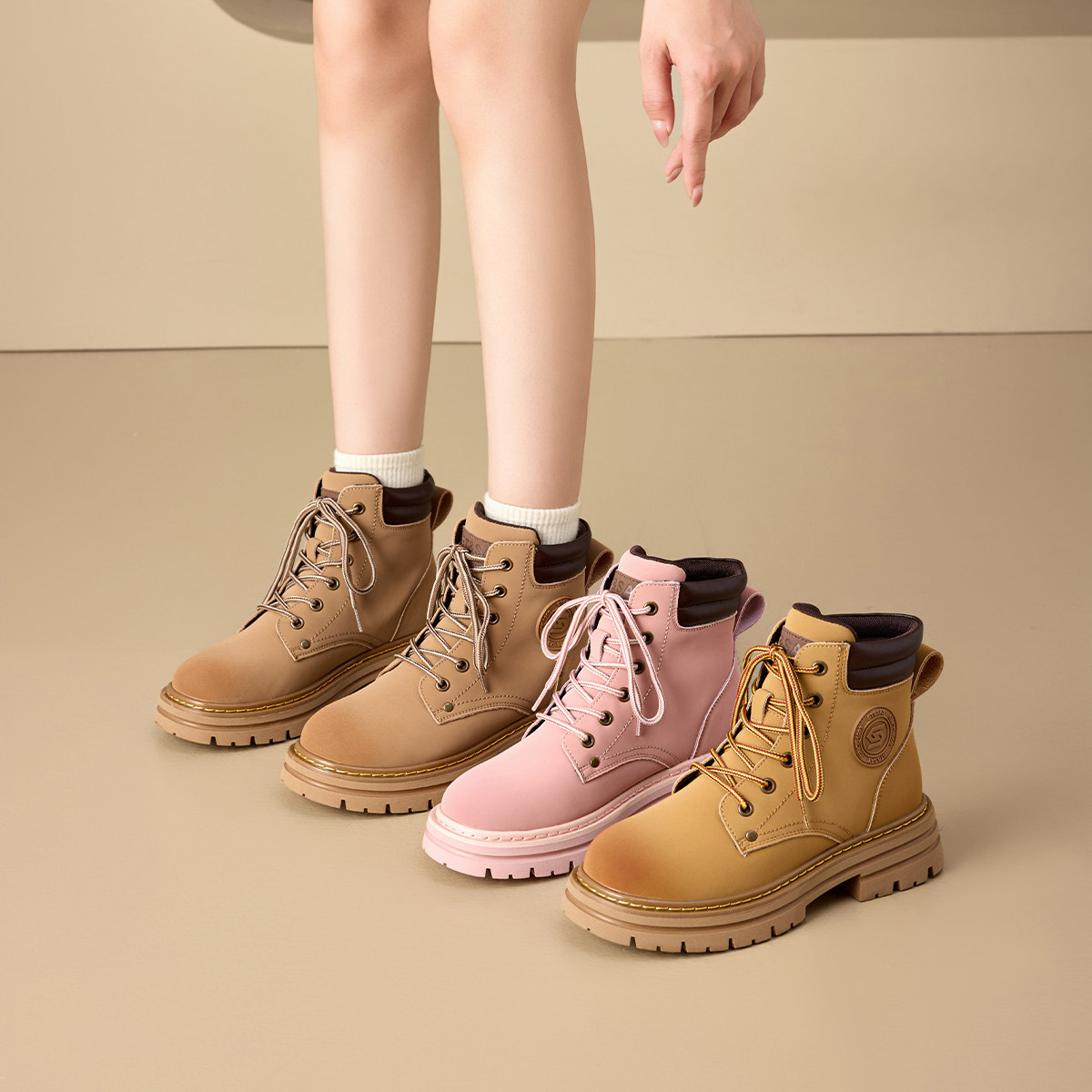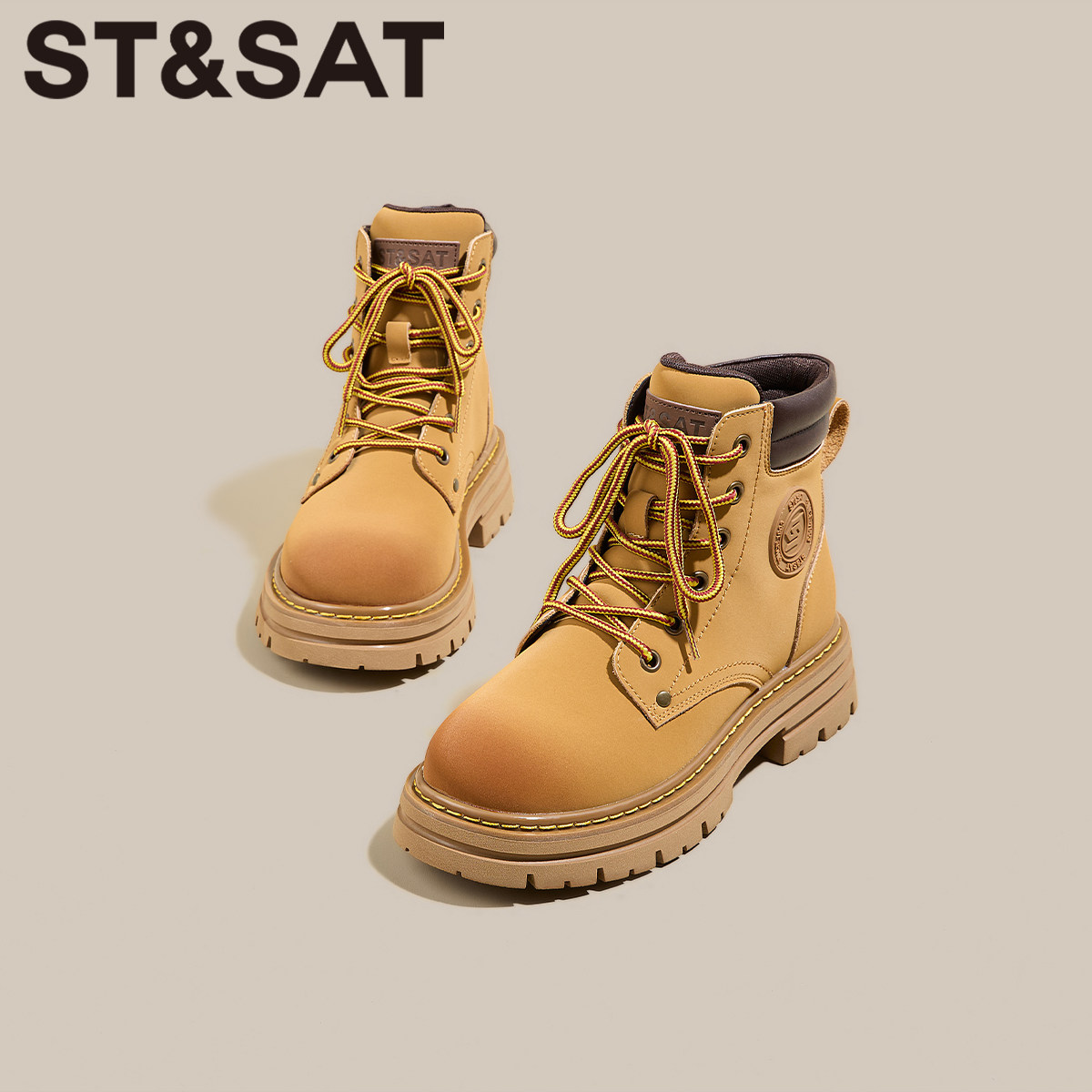 星期六英伦风真皮厚底马丁靴女2026春季新款系带复古大黄靴