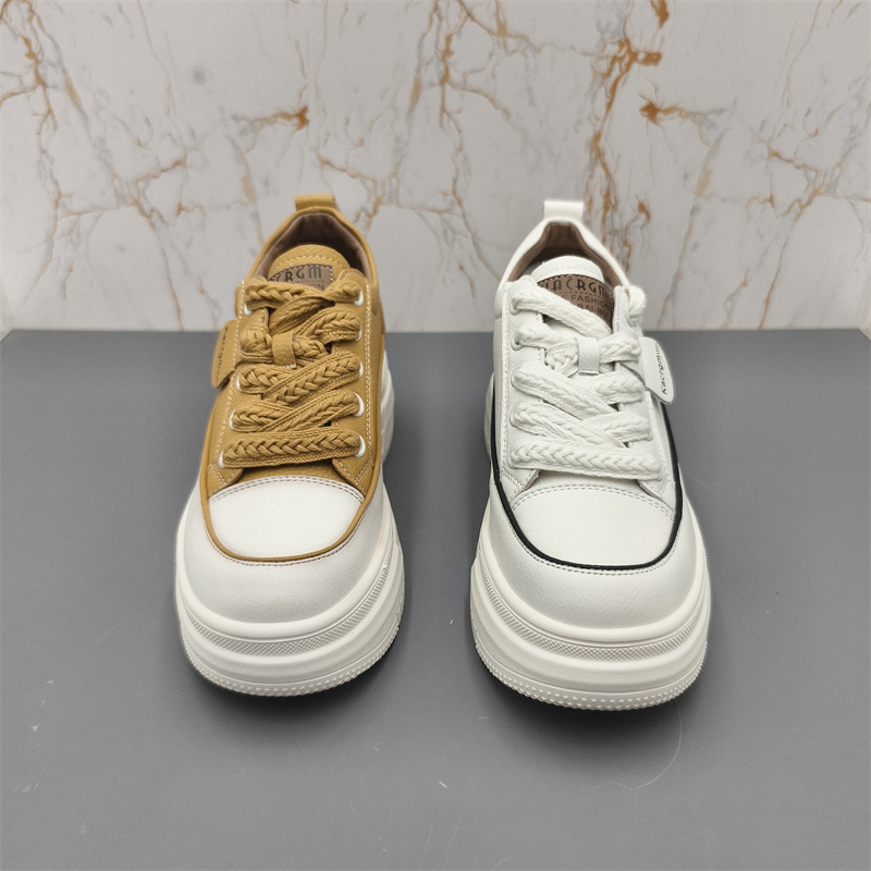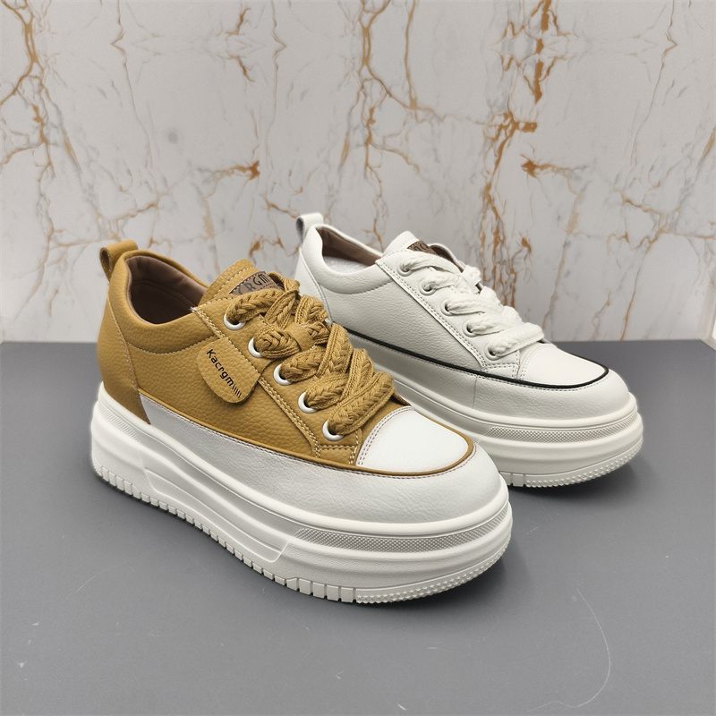 断码处理真皮2025秋季圆头内增高牛皮舒适韩版轻便系带休闲鞋女鞋