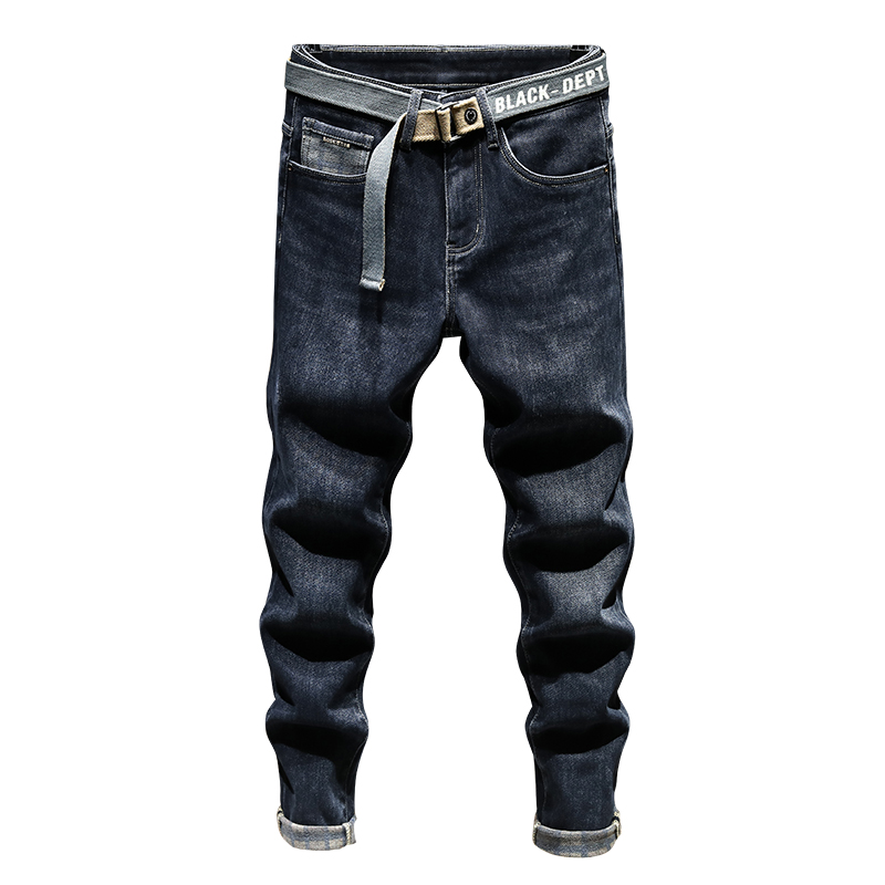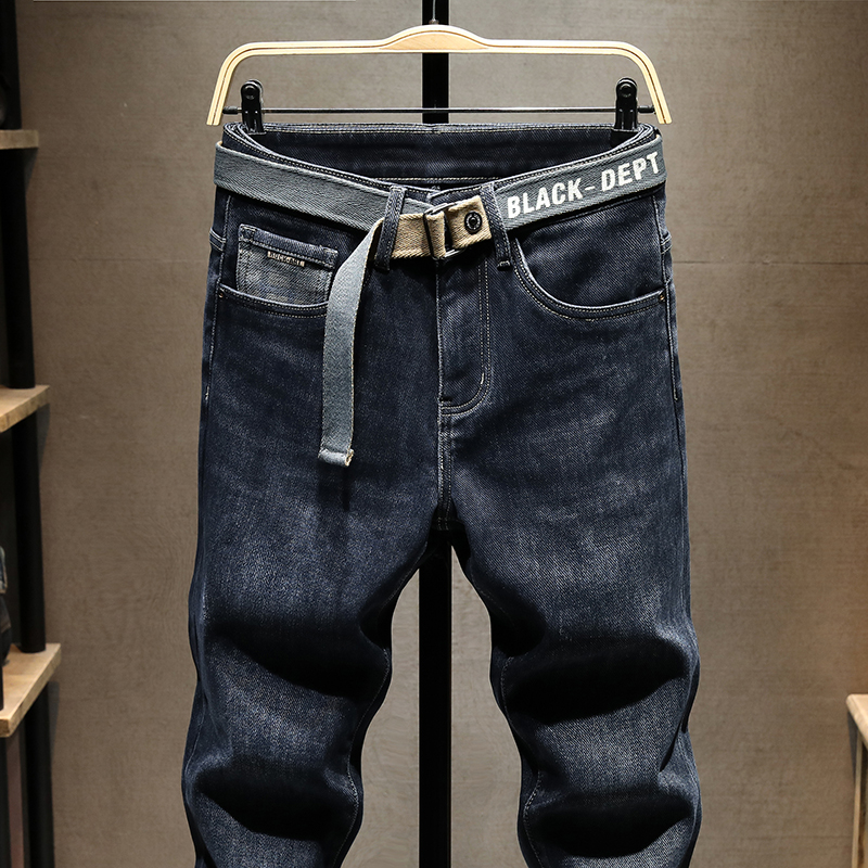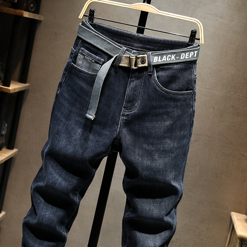 裤子男秋冬款潮牌微哈伦牛仔裤男款修身小脚抓绒休闲长裤痞帅薄绒