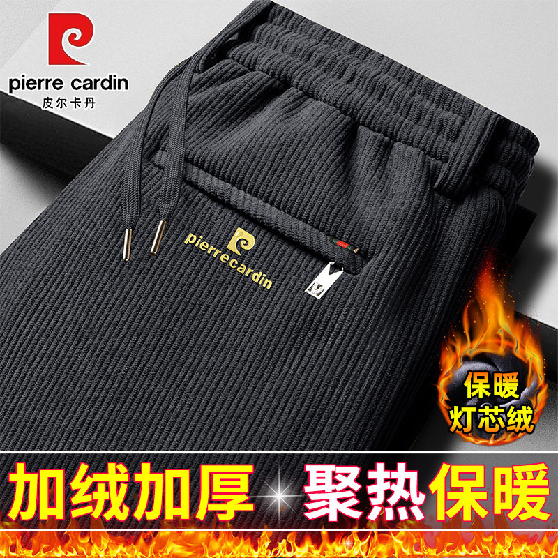 皮尔卡丹冬季男士加绒加厚休闲裤