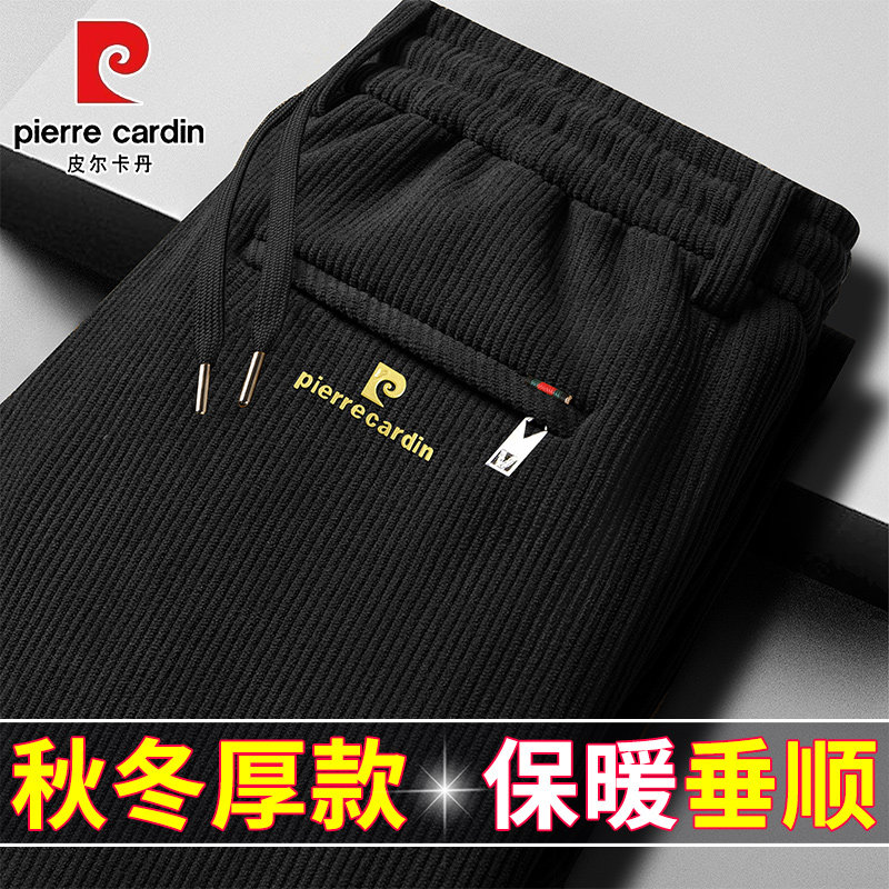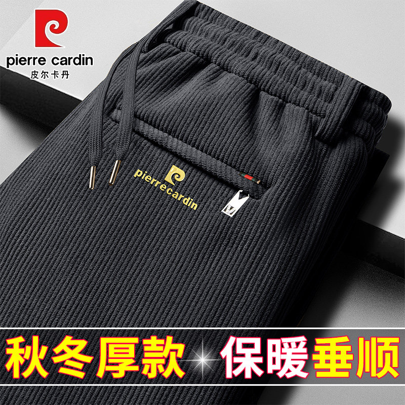 皮尔卡丹冬季男士加绒加厚款松紧休闲裤灯芯绒条绒运动裤保暖卫裤