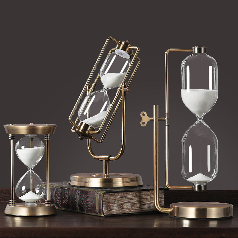 轻奢创意金属地球仪沙漏摆件欧式办公室书柜书房酒柜家居软装饰品