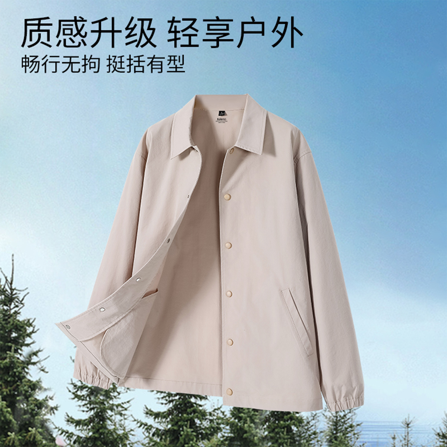 班尼路男士翻领夹克春秋季轻户外休闲潮流外套男款开衫通勤上衣A