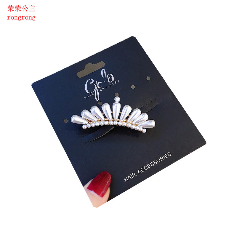 气质珍珠弹簧夹马尾夹时尚半扎发卡夹一字夹后脑勺顶夹横夹发饰品