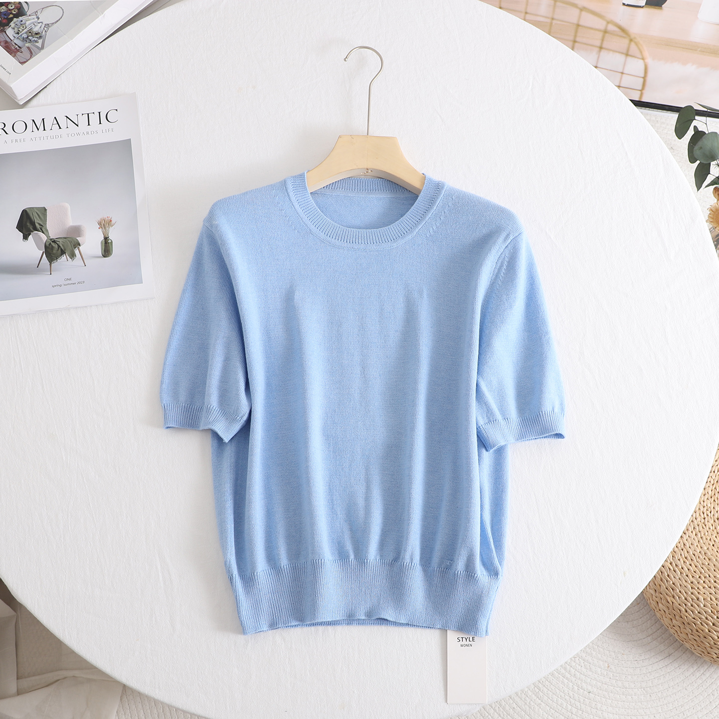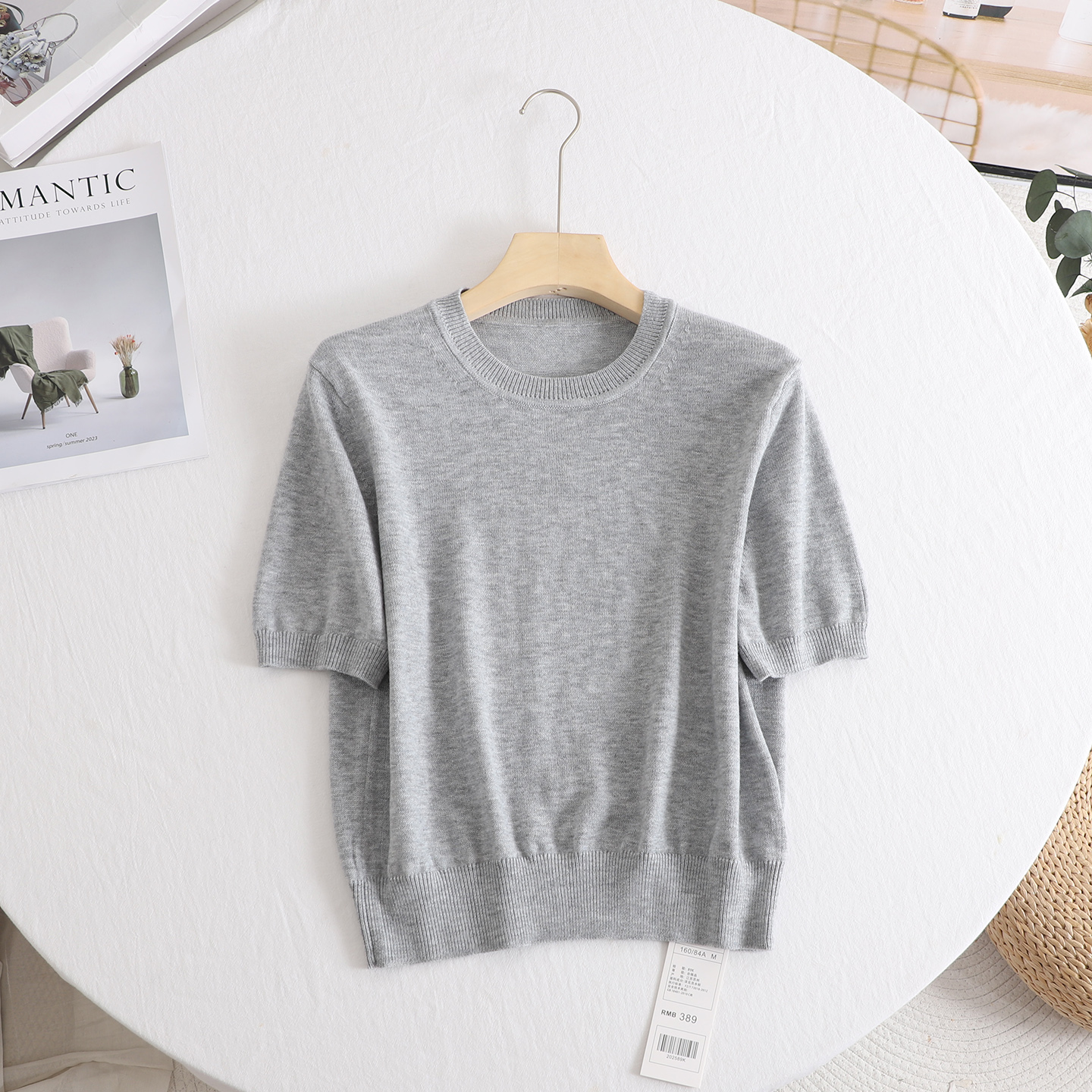 2025秋季新款时尚百搭设计感圆领宽松显瘦短袖针织衫上衣女