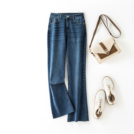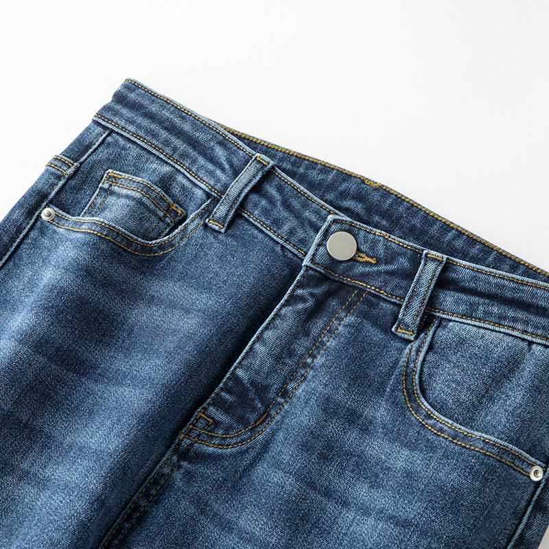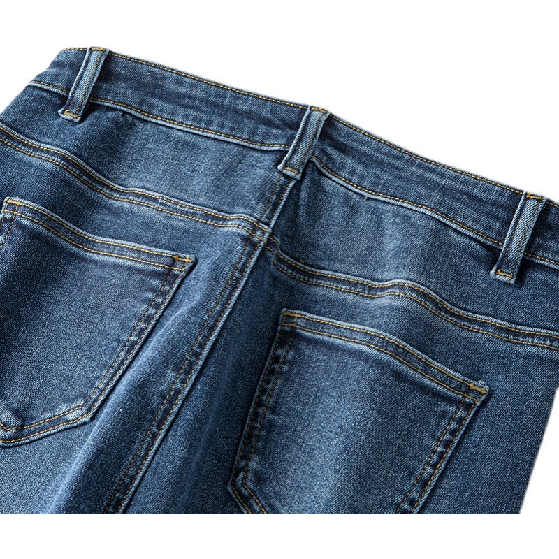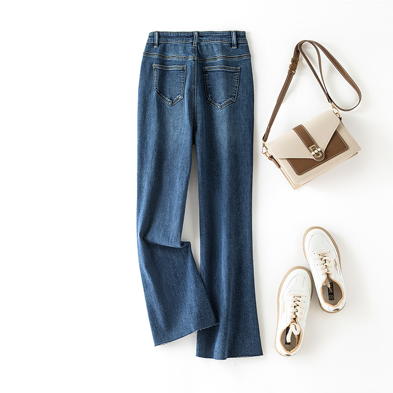 阿月大码微喇牛仔裤女9分弹力潮